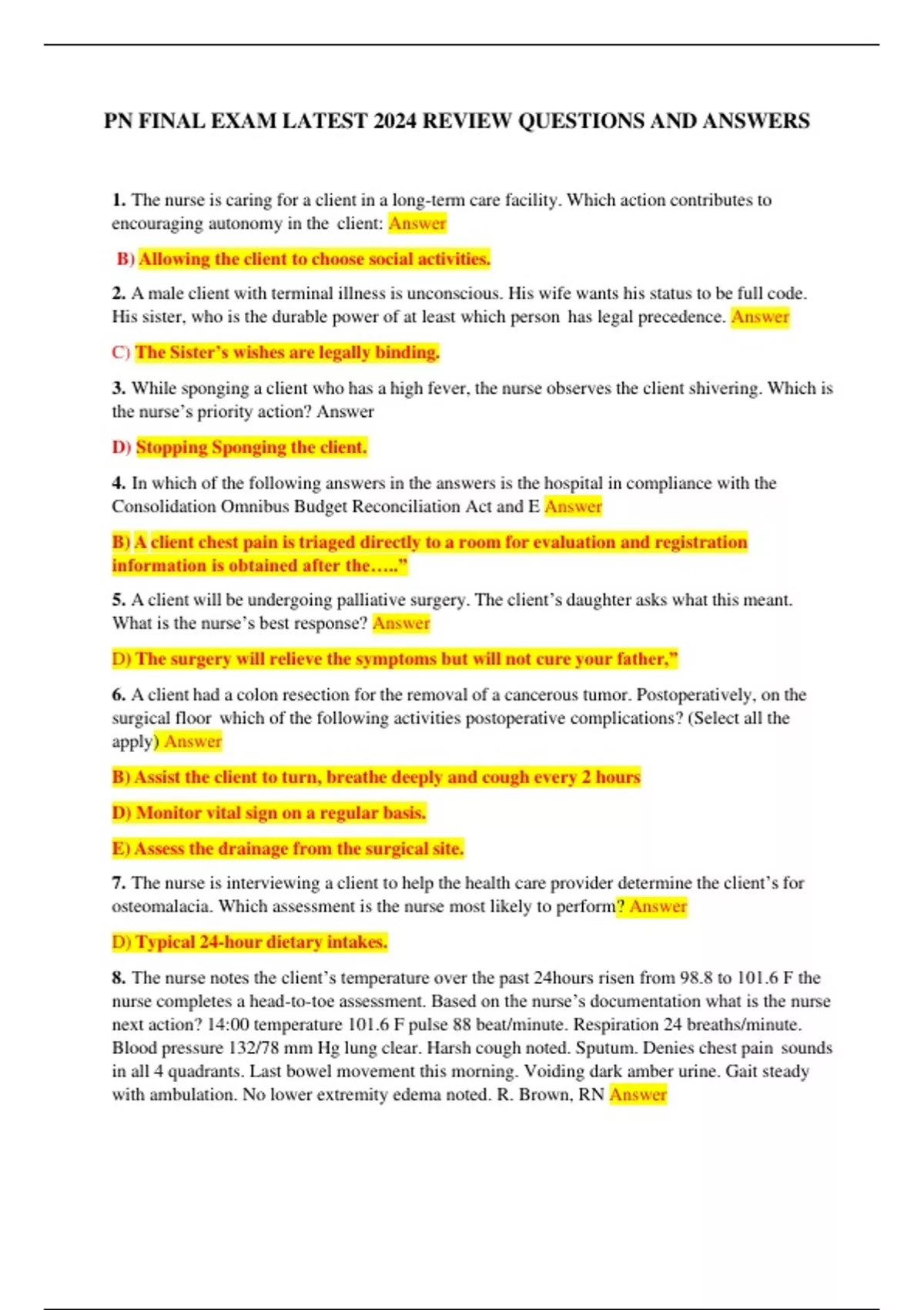 PN FINAL EXAM LATEST REVIEW QUESTIONS AND ANSWERS 2024