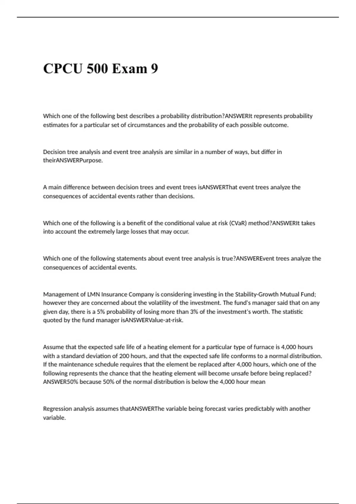 - cpcu 500 exam 9