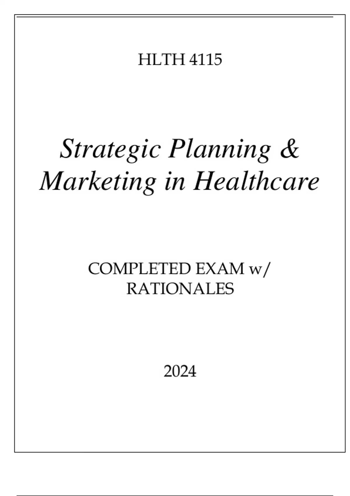 HLTH 4115 STRATEGIC PLANNING & MARKETING IN HEALTHCARE COMPLETED EXAM