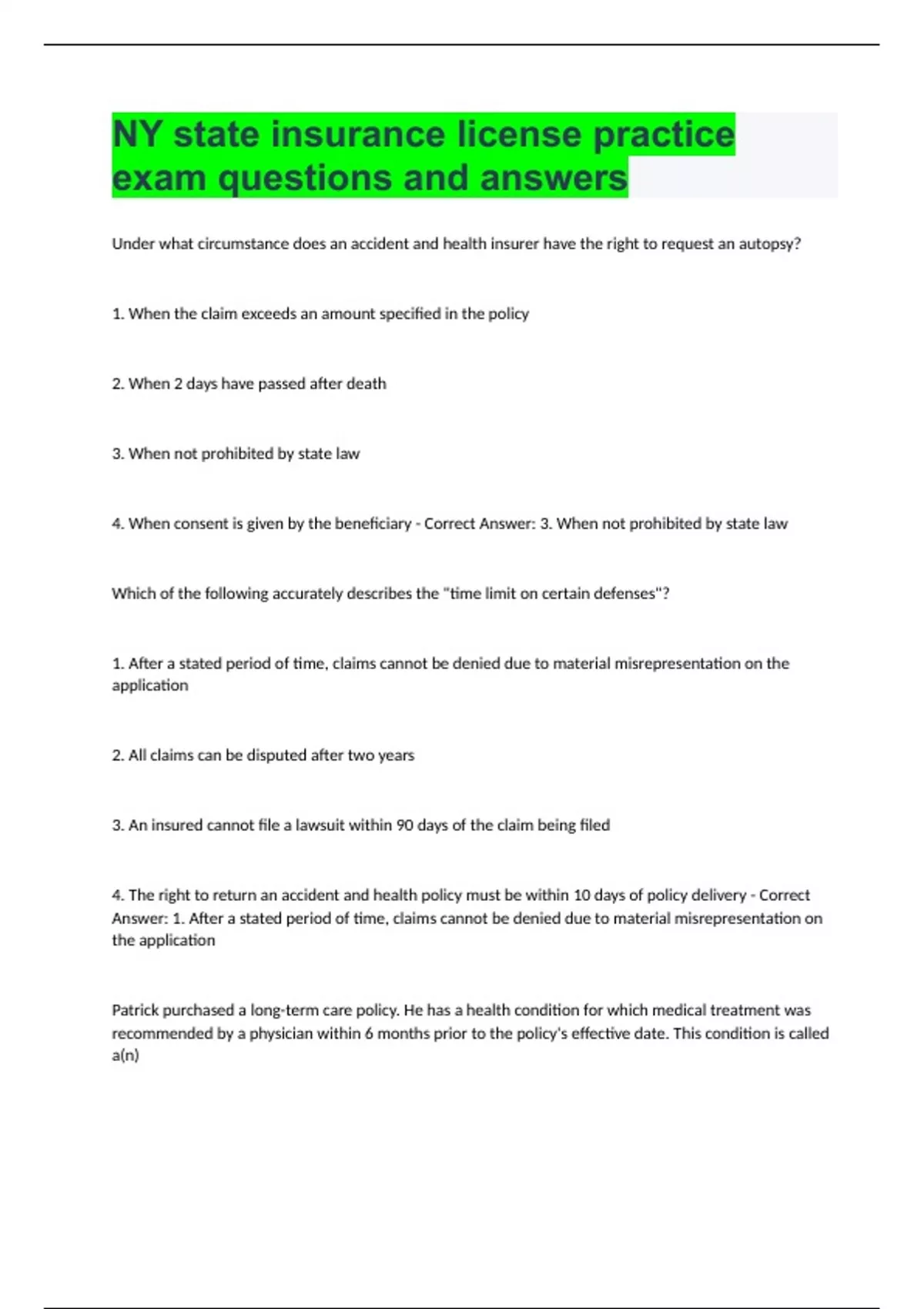 NY state insurance license practice exam questions and answers