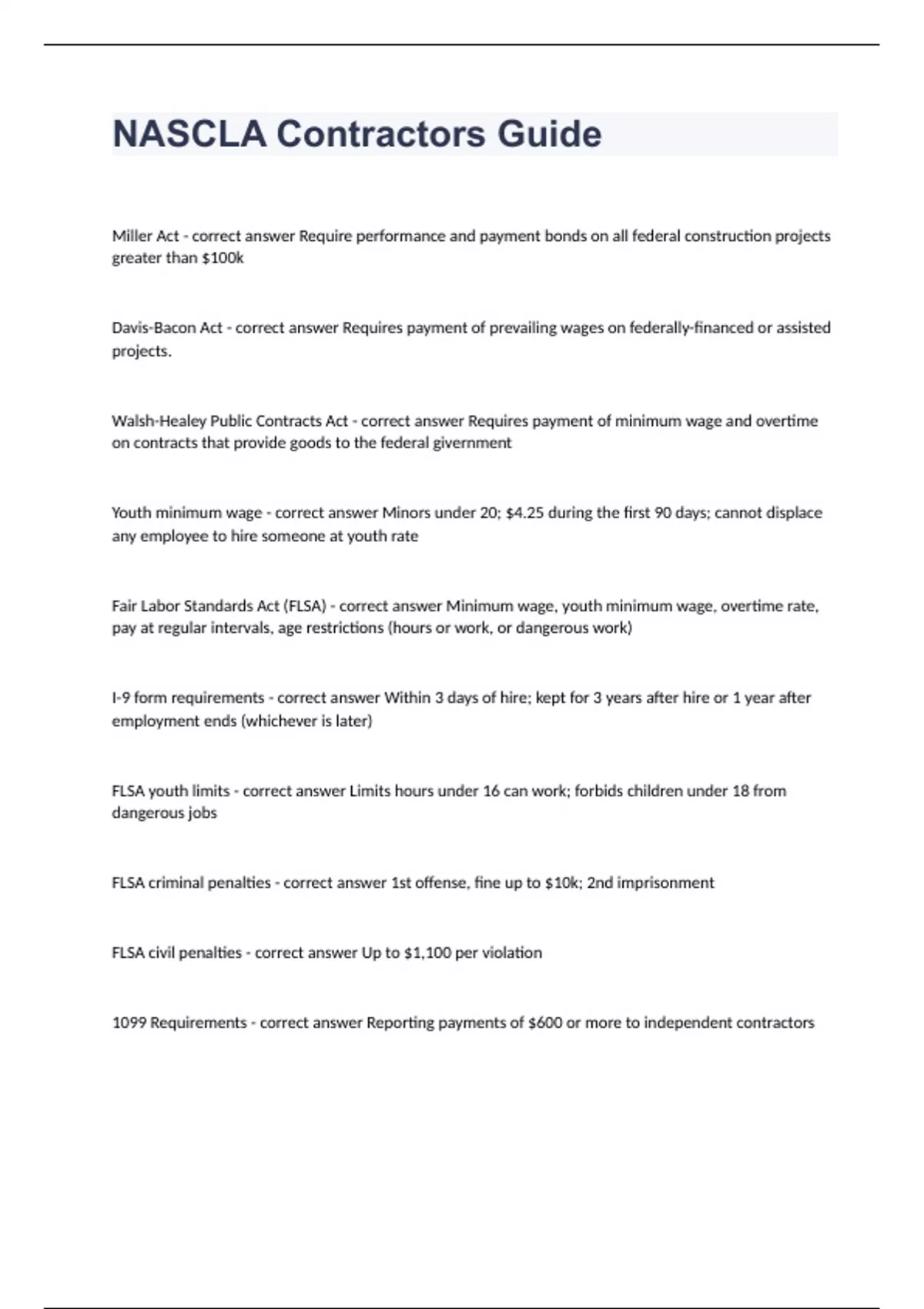 NASCLA Contractors Guide Question and answers 100% correct 2023/2024