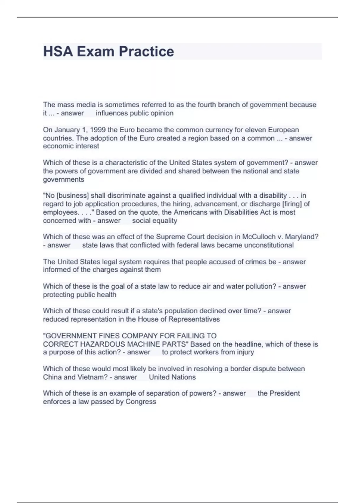 HSA Exam Practice