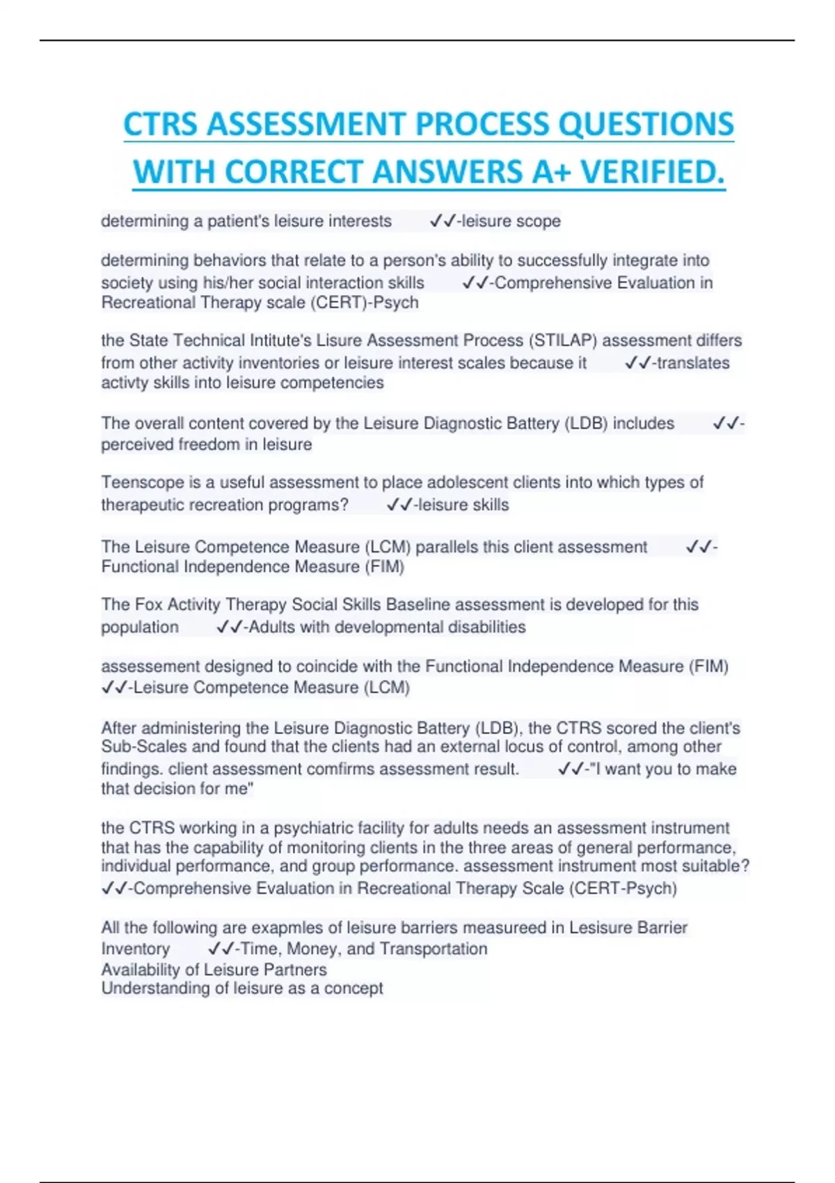 CTRS ASSESSMENT PROCESS QUESTIONS WITH CORRECT ANSWERS A+ VERIFIED.CTRS ASSESSMENT PROCESS QUESTIONS WITH CORRECT ANSWERS A+ VERIFIED.CTRS ASSESSMENT PROCESS QUESTIONS WITH CORRECT ANSWERS A+ VERIFIED.CTRS ASSESSMENT PROCESS QUESTIONS WITH CORRECT ANSWERS A+ VERIFIED.CTRS ASSESSMENT PROCESS QUESTIONS WITH CORRECT ANSWERS A+ VERIFIED.CTRS ASSESSMENT PROCESS QUESTIONS WITH CORRECT ANSWERS A+ VERIFIED.CTRS ASSESSMENT PROCESS QUESTIONS WITH CORRECT ANSWERS A+ VERIFIED.CTRS ASSESSMENT PROCESS QUESTIONS WITH CORRECT ANSWERS A+ VERIFIED.CTRS ASSESSMENT PROCESS QUESTIONS WITH CORRECT ANSWERS A+ VERIFIED.CTRS ASSESSMENT PROCESS QUESTIONS WITH CORRECT ANSWERS A+ VERIFIED.