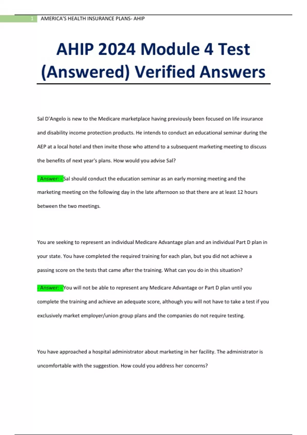 AHIP 2024 Module 4 Test (Answered) Verified Answers