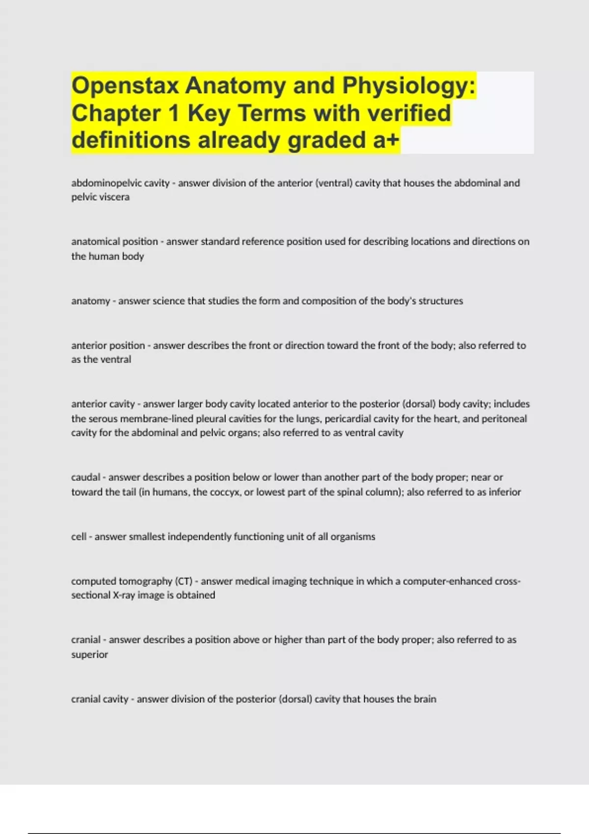 Openstax Anatomy and Physiology Chapter 1 Key Terms with verified definitions already graded a+