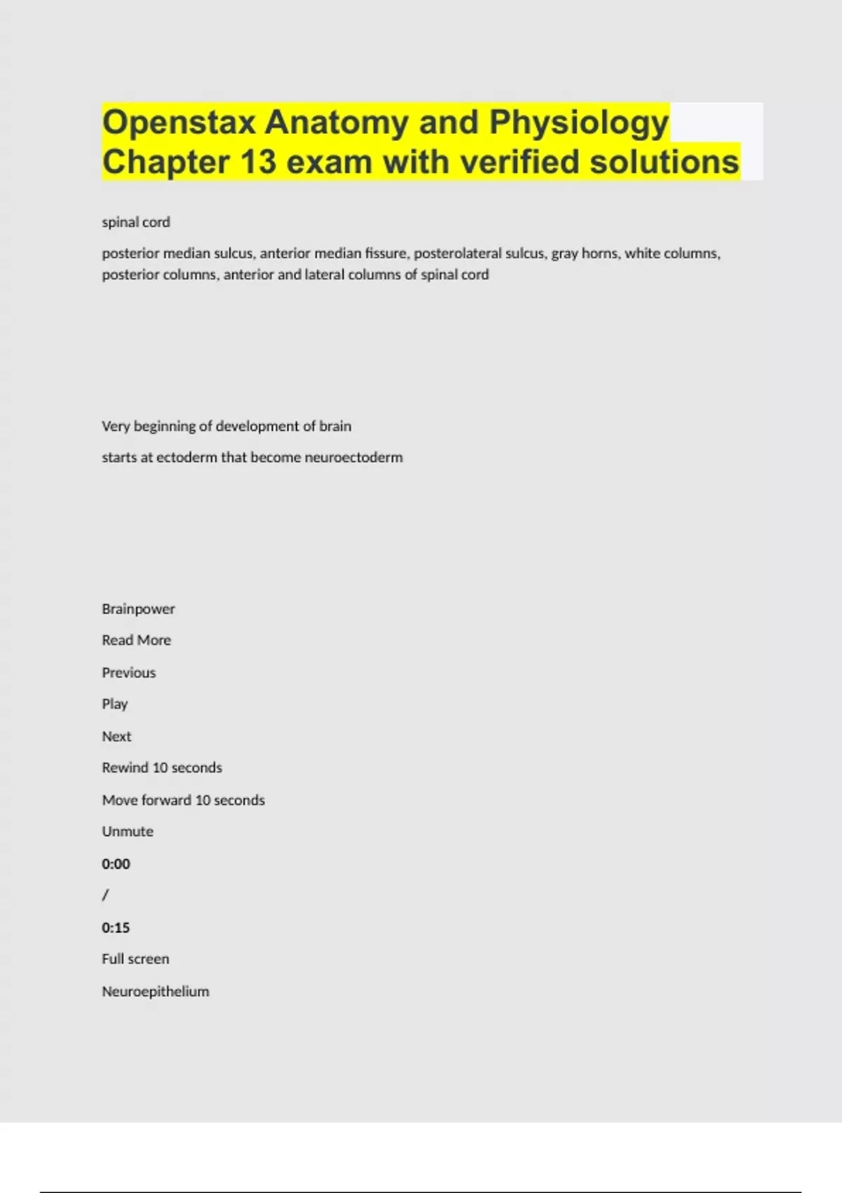 Openstax Anatomy and Physiology Chapter 13 exam with verified solutions.