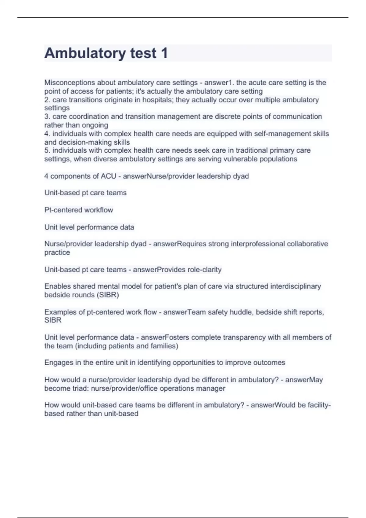 Exam of 5 pages for the course AMBULATORY CARE NURSING at AMBULATORY CARE NURSING (Ambulatory test 1.)