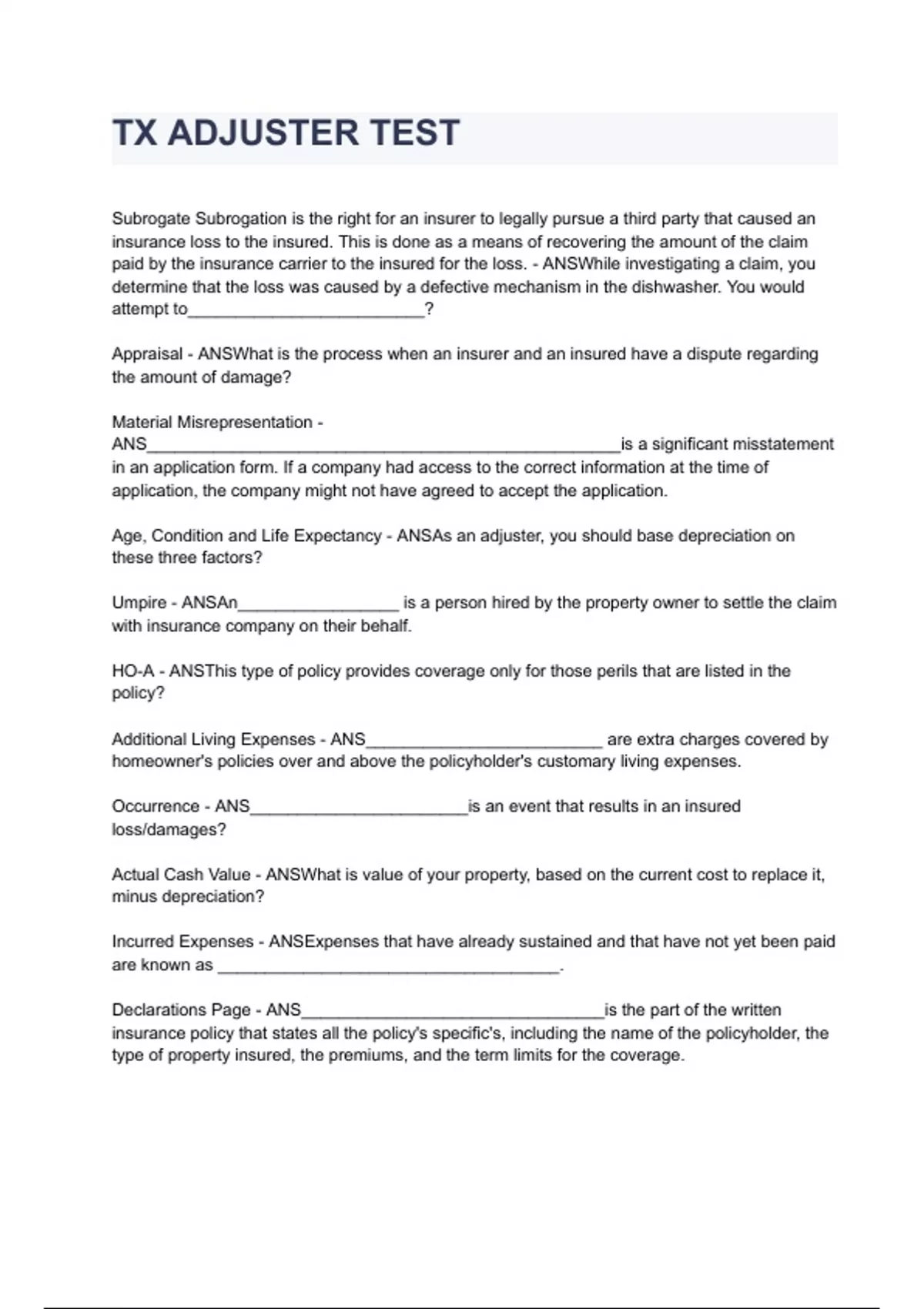 TX ADJUSTER TEST 2024/2025 already graded A+