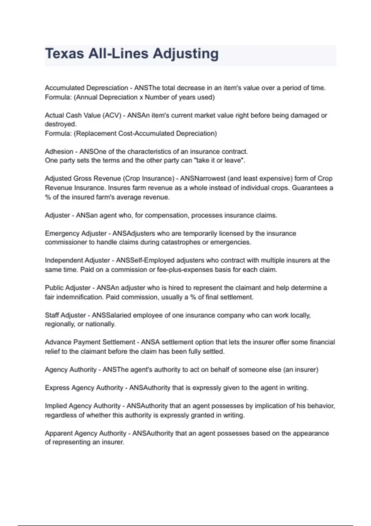 Texas All-Lines Adjusting 2024/2025 already graded A+