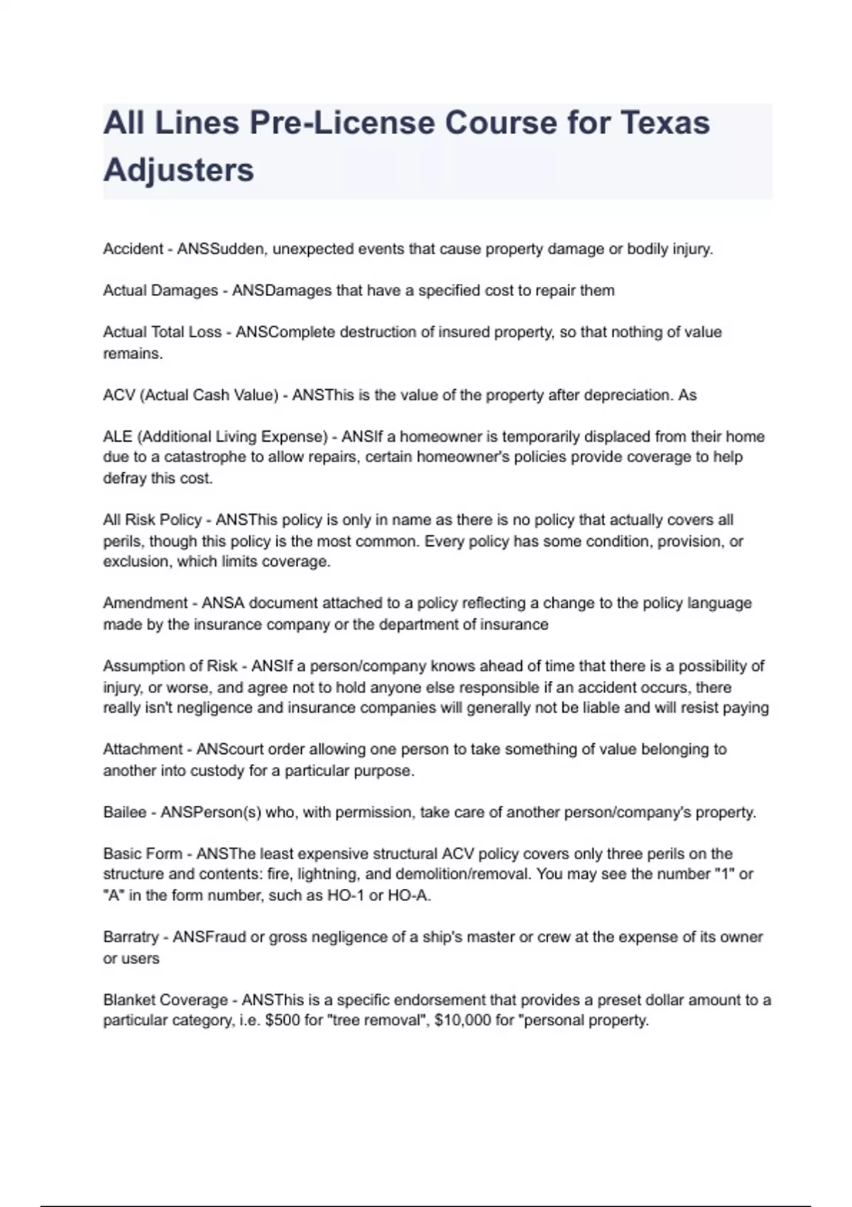 ACV (Actual Cash Value) - ANSThis is the value of the property after depreciation. As