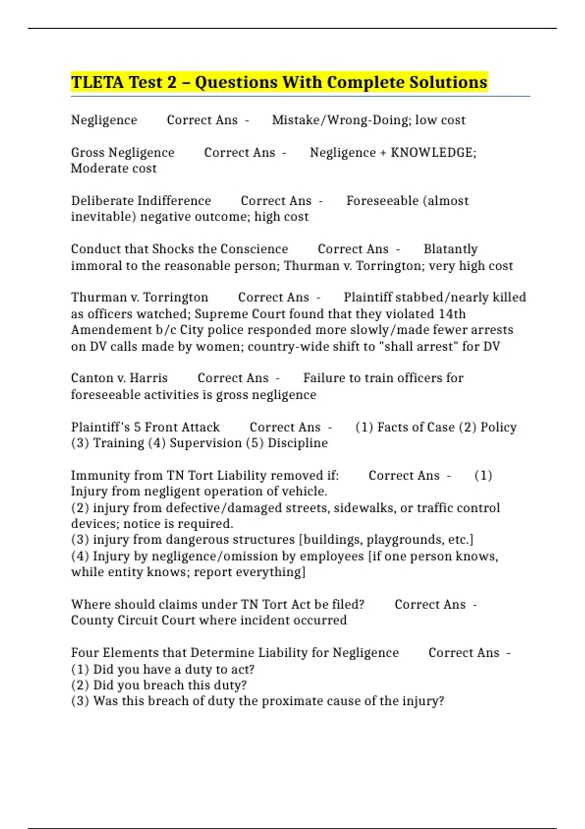 Negligence Correct Ans - Mistake/Wrong-Doing; low cost