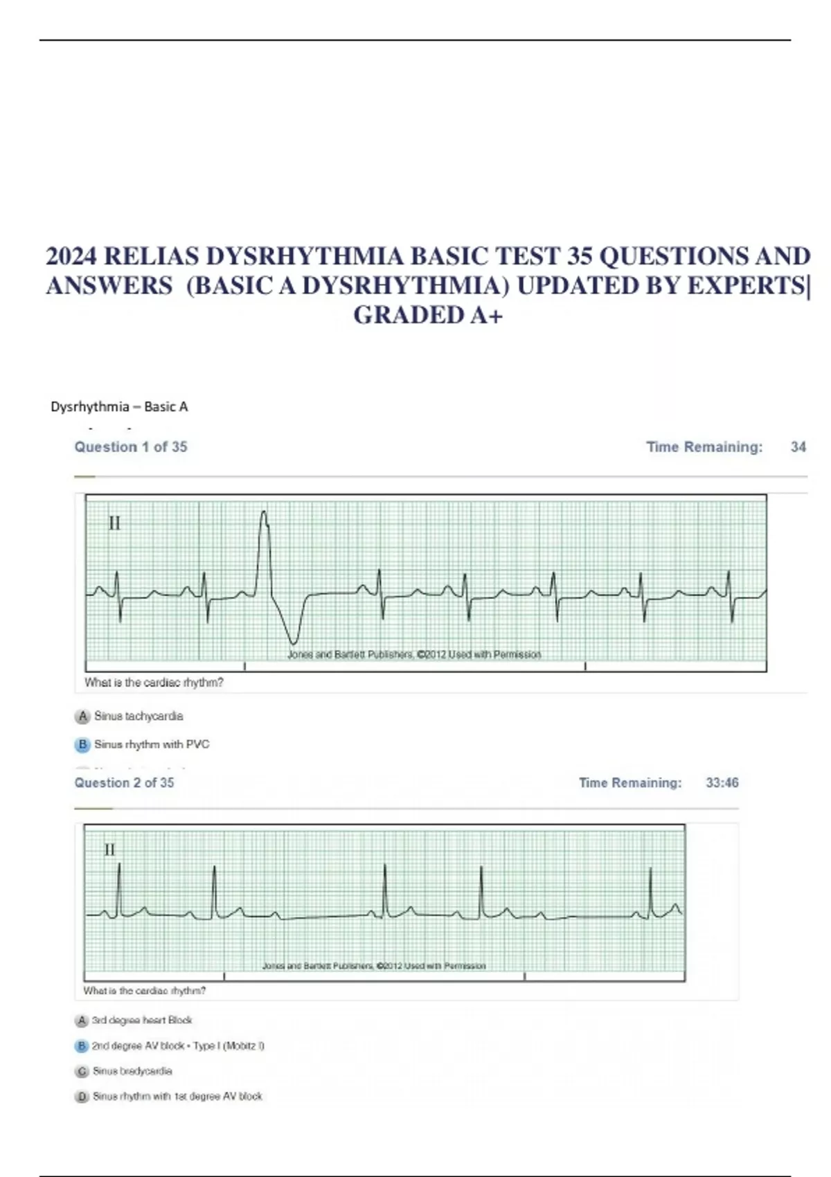 2024 RELIAS DYSRHYTHMIA BASIC TEST 35 QUESTIONS AND ANSWERS (BASIC A DYSRHYTHMIA) UPDATED BY EXPERTS| GRADED A+