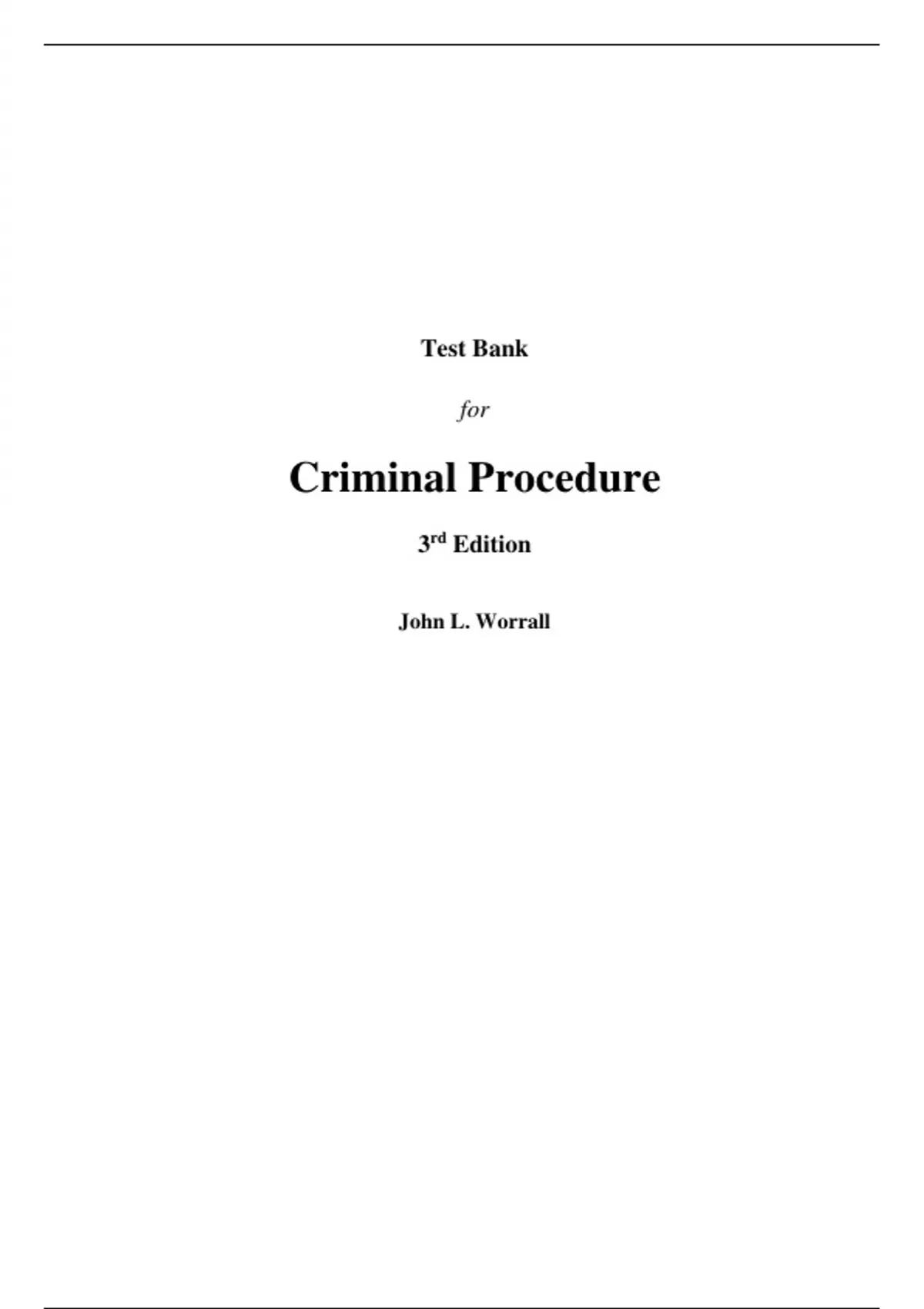 Test Bank for Criminal Procedure (Justice Series) 3rd Edition By John Worrall (All Chapters, 100% Original Verified, A+ Grade) Test Bank for Criminal Procedure (Justice Series) 3e By John Worrall (All Chapters, 100% Original Verified, A+ Grade)