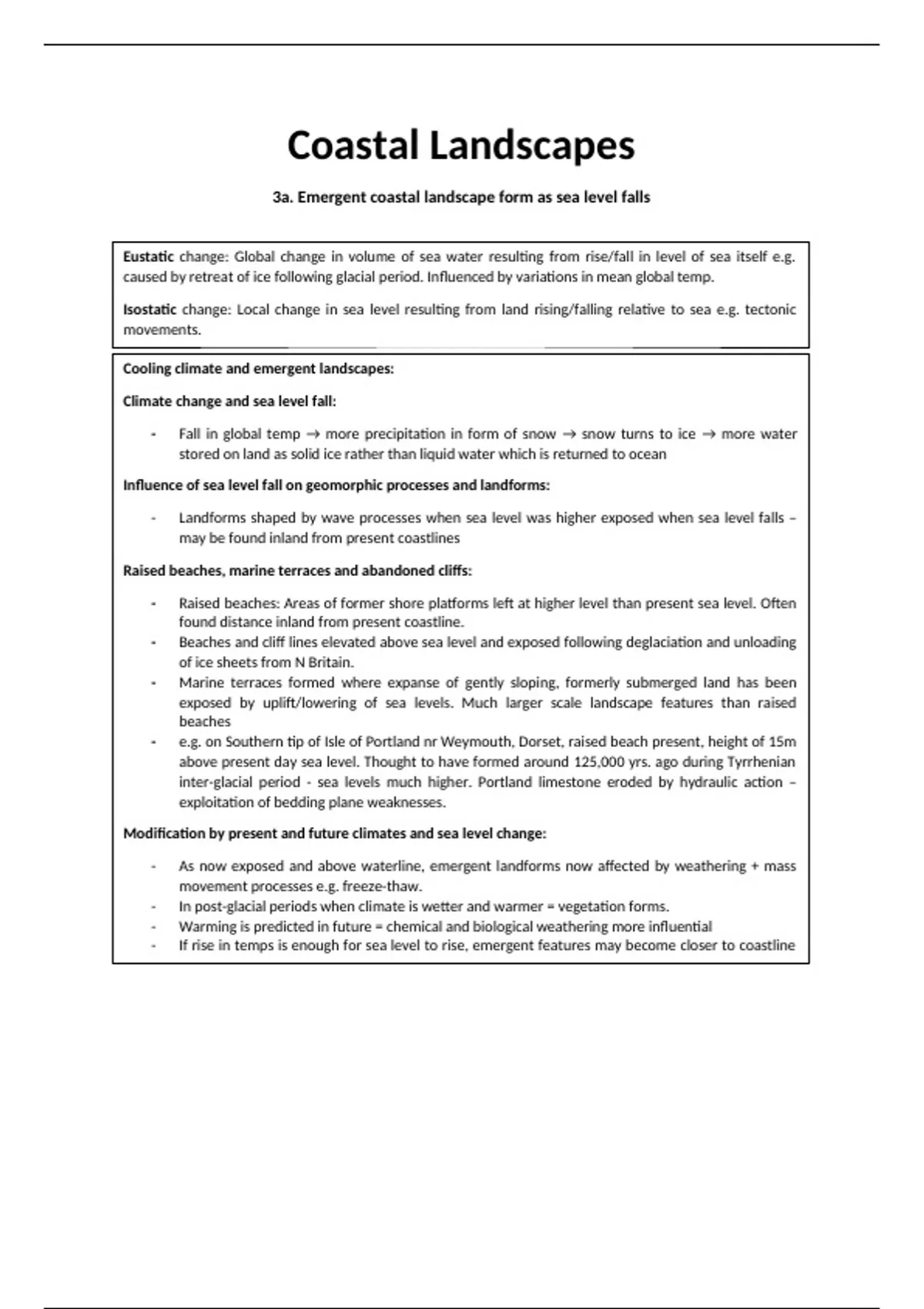 - Landforms shaped by wave processes when sea level was higher exposed when sea level falls –