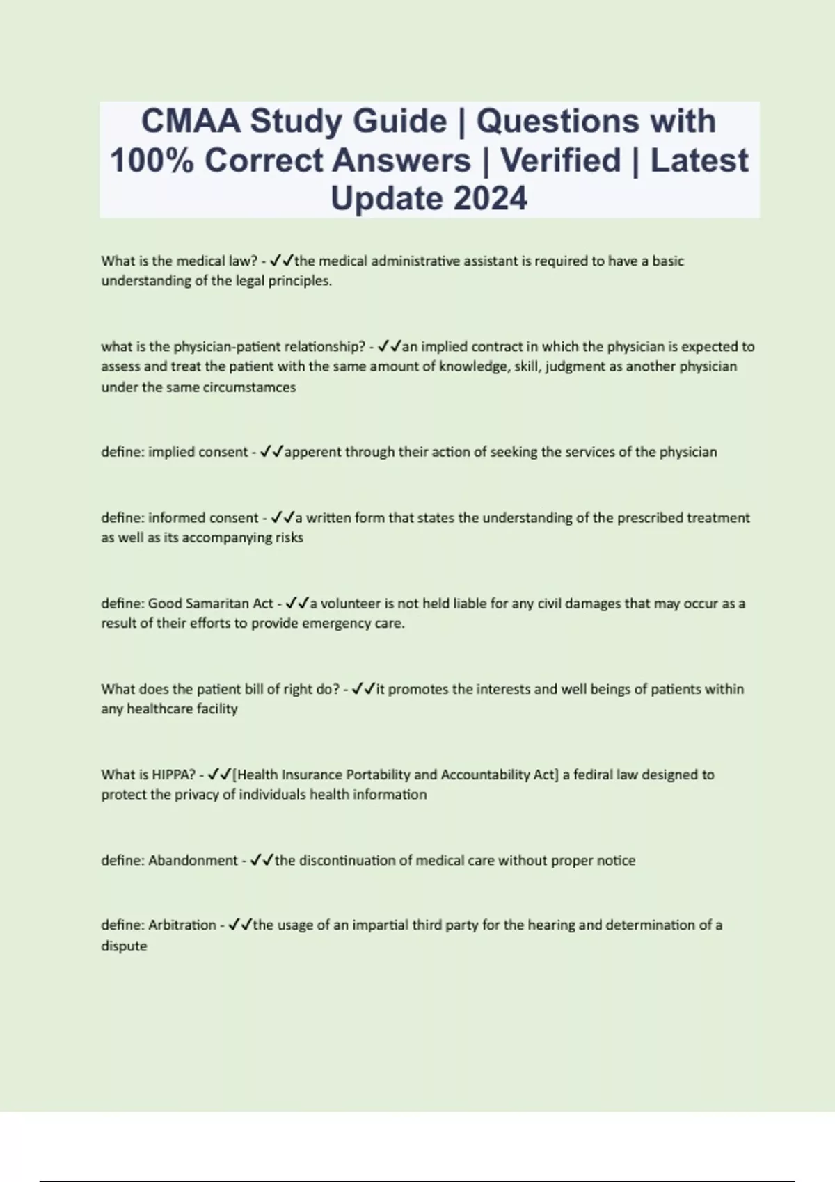 CMAA Study Guide | Questions with 100% Correct Answers | Verified | Latest Update 2024