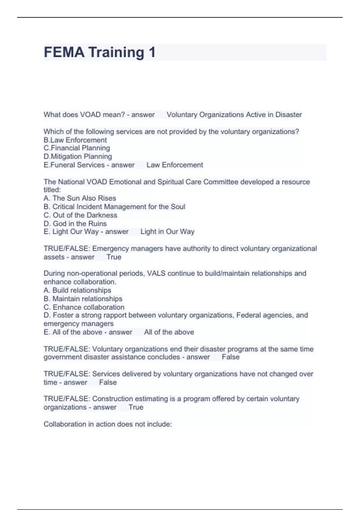 FEMA Training 1 Questions and Answers Fully solved 2024