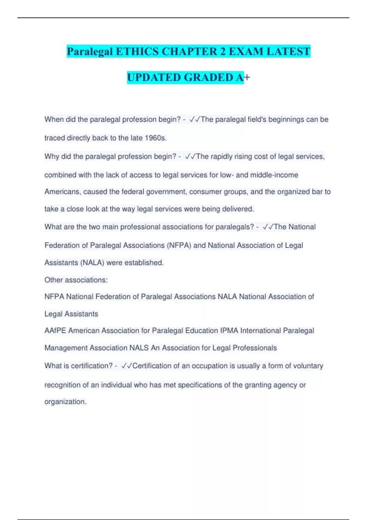 Paralegal Bundled Exams Together with complete solutions Questions and Answers Graded A , Latest Update (Verified Answers) (Full Solution Pack)