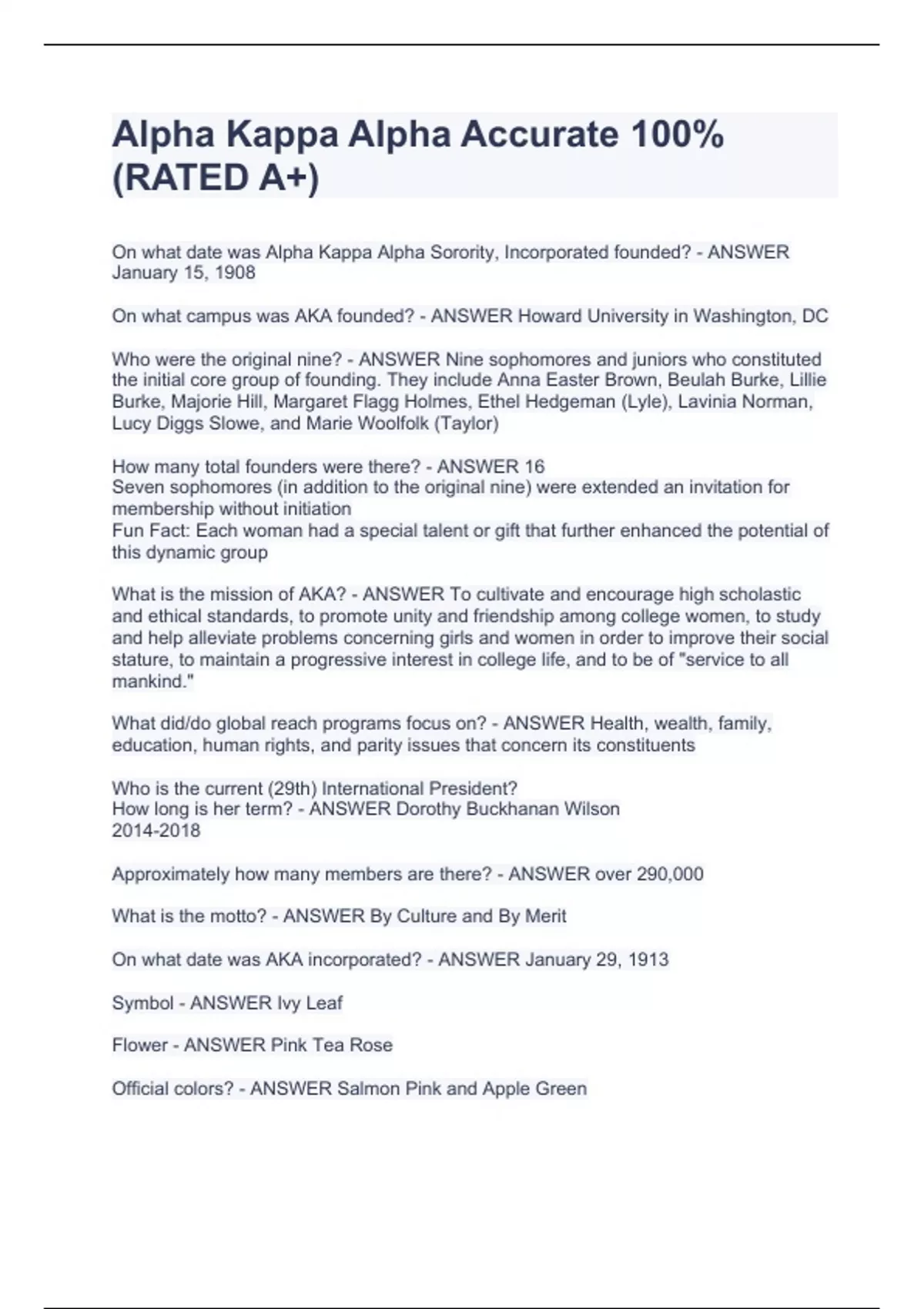 Alpha Kappa Alpha Accurate 100%(RATED A+)