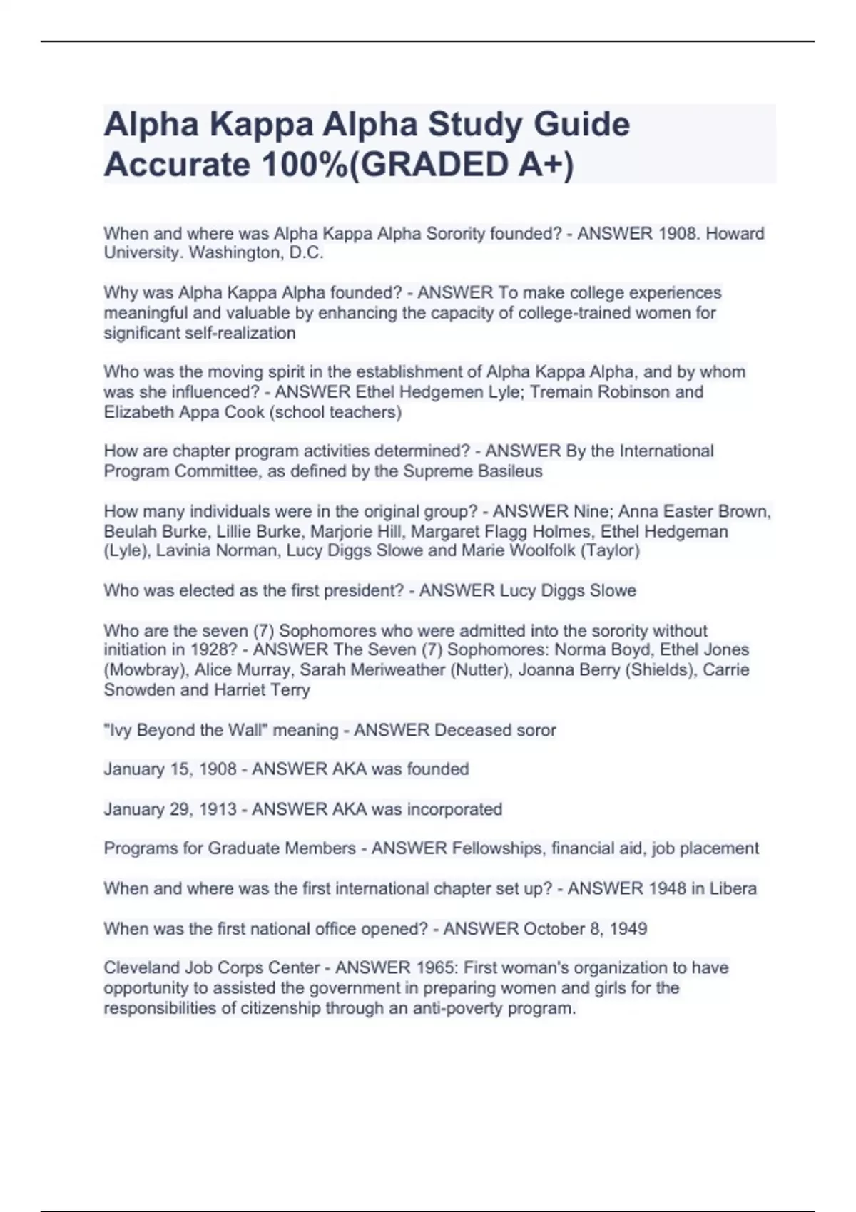 Alpha Kappa Alpha Study Guide Accurate 100%(GRADED A+)
