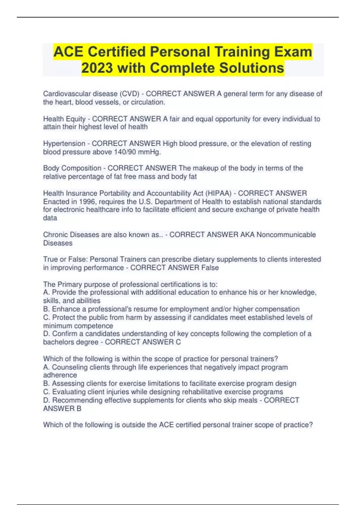 ACE Certified Personal Training Exam 2023 with Complete Solutions