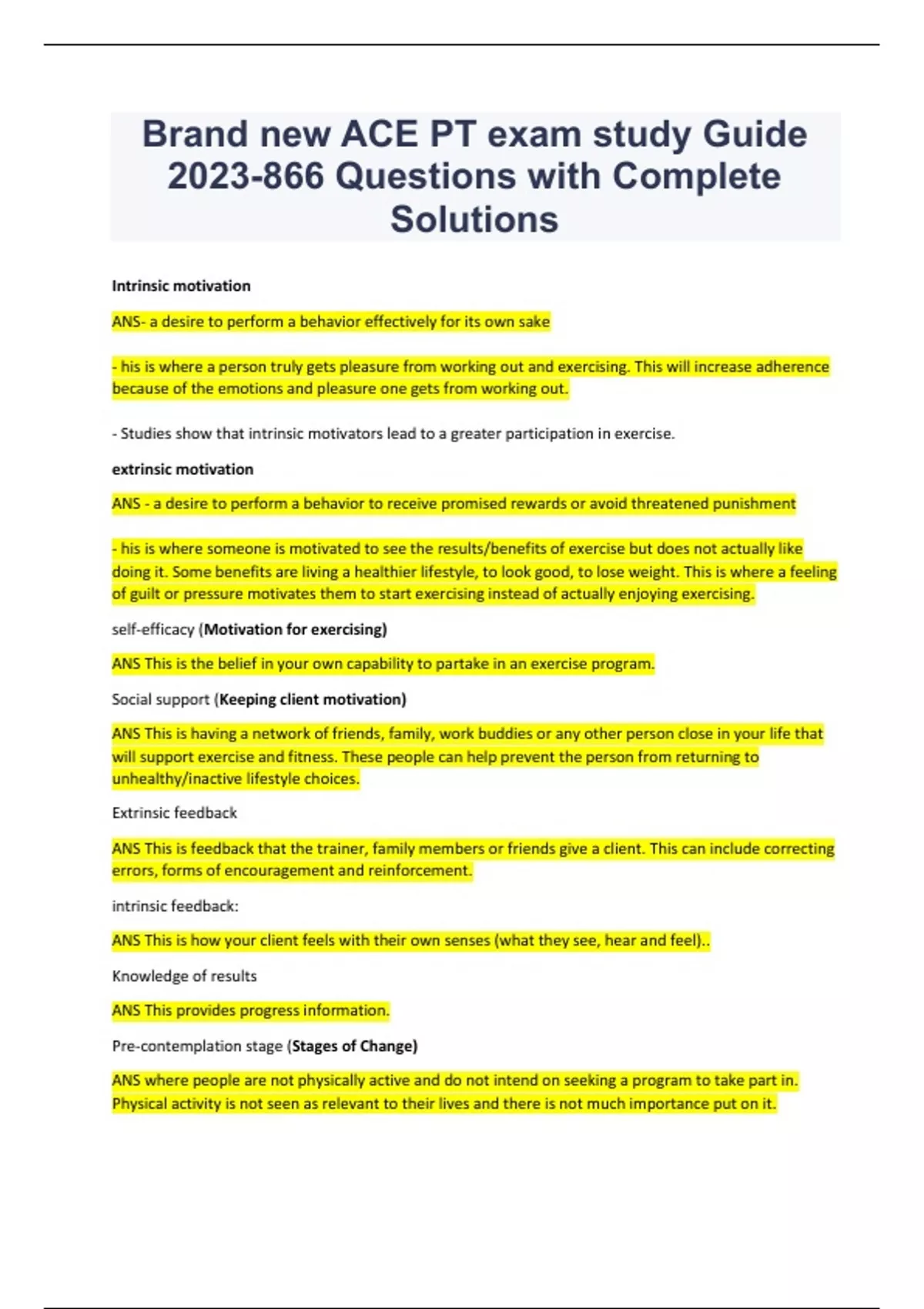 Brand new ACE PT exam study Guide 2023-866 Questions with Complete Solutions