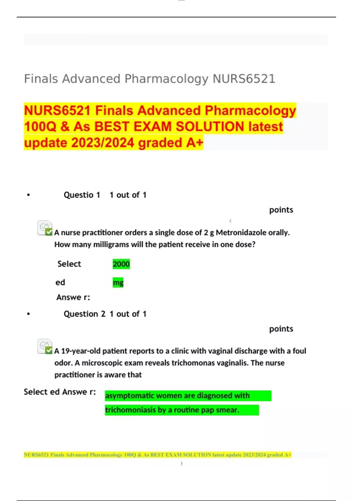 NURS6521 Finals Advanced Pharmacology 100Q & As BEST EXAM SOLUTION latest update 2023/2024 graded A+