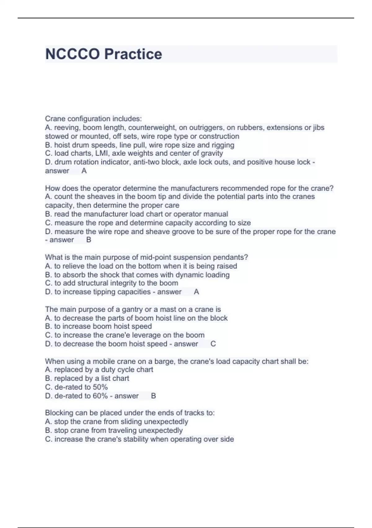 NCCCO Practice Questions and Answers Scored A+