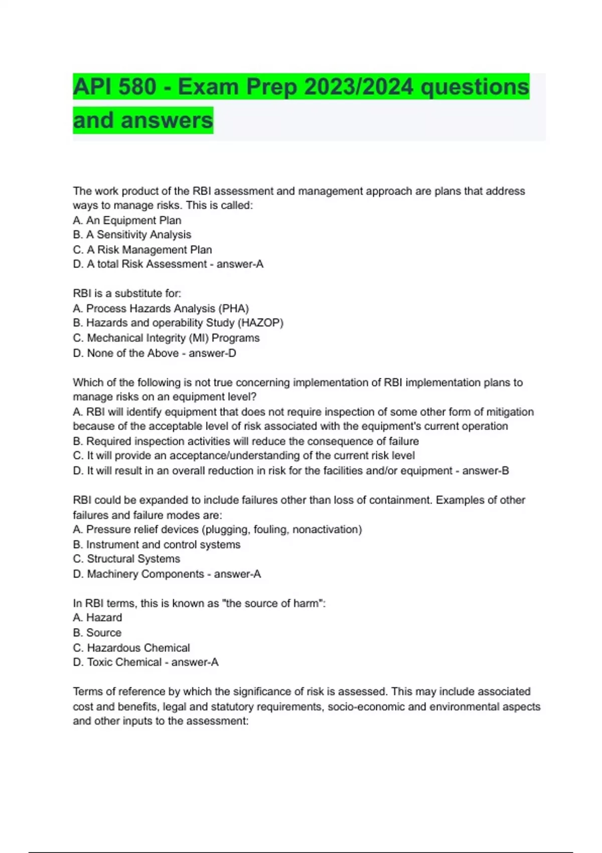api 580 exam prep questions and answer