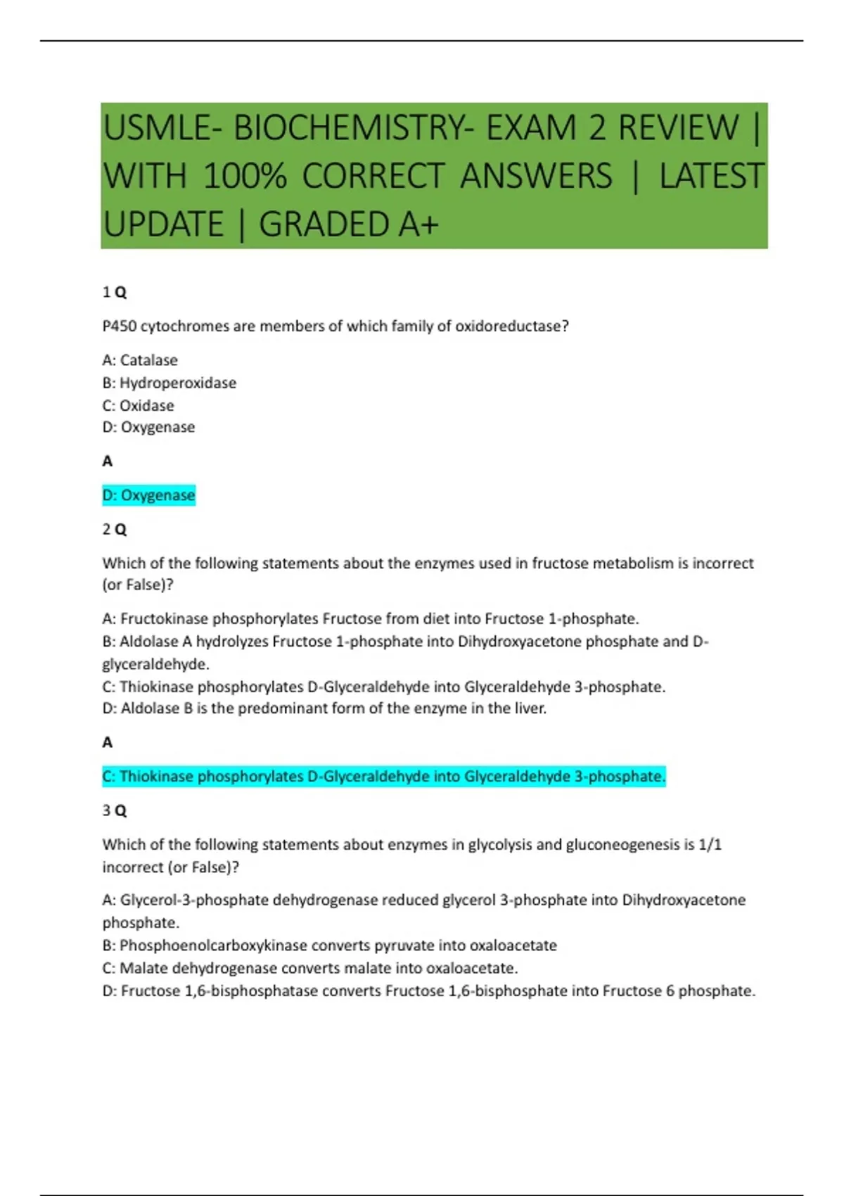 USMLE- BIOCHEMISTRY- EXAM 2 REVIEW | WITH 100% CORRECT ANSWERS | LATEST UPDATE | GRADED A+