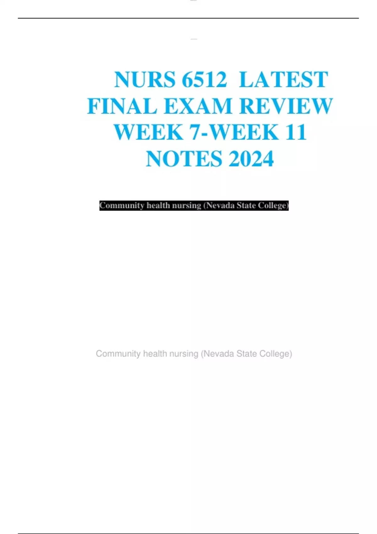 NURS 6512 LATEST FINAL EXAM REVIEW WEEK 7-WEEK 11 NOTES 2024