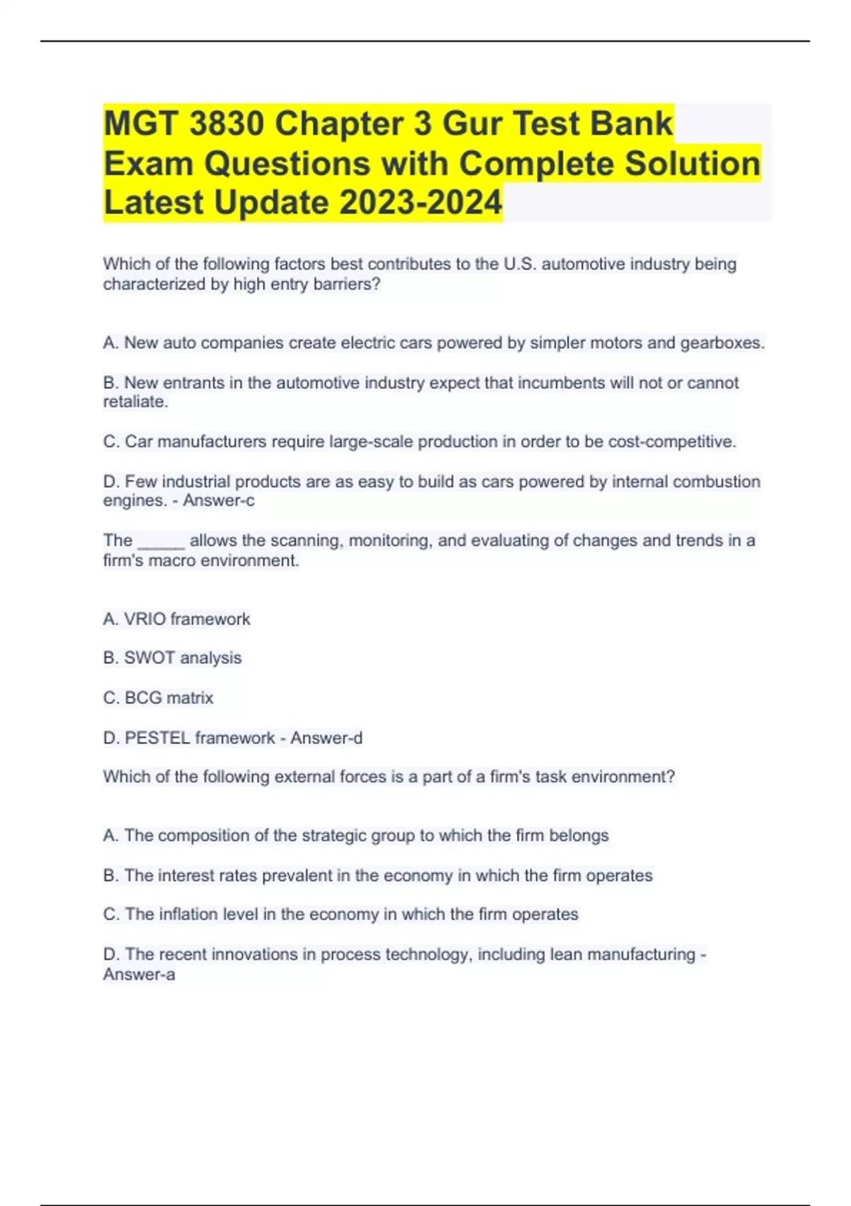 MGT 3830 Chapter 3 Gur Test Bank Exam Questions with Complete Solution Latest Update