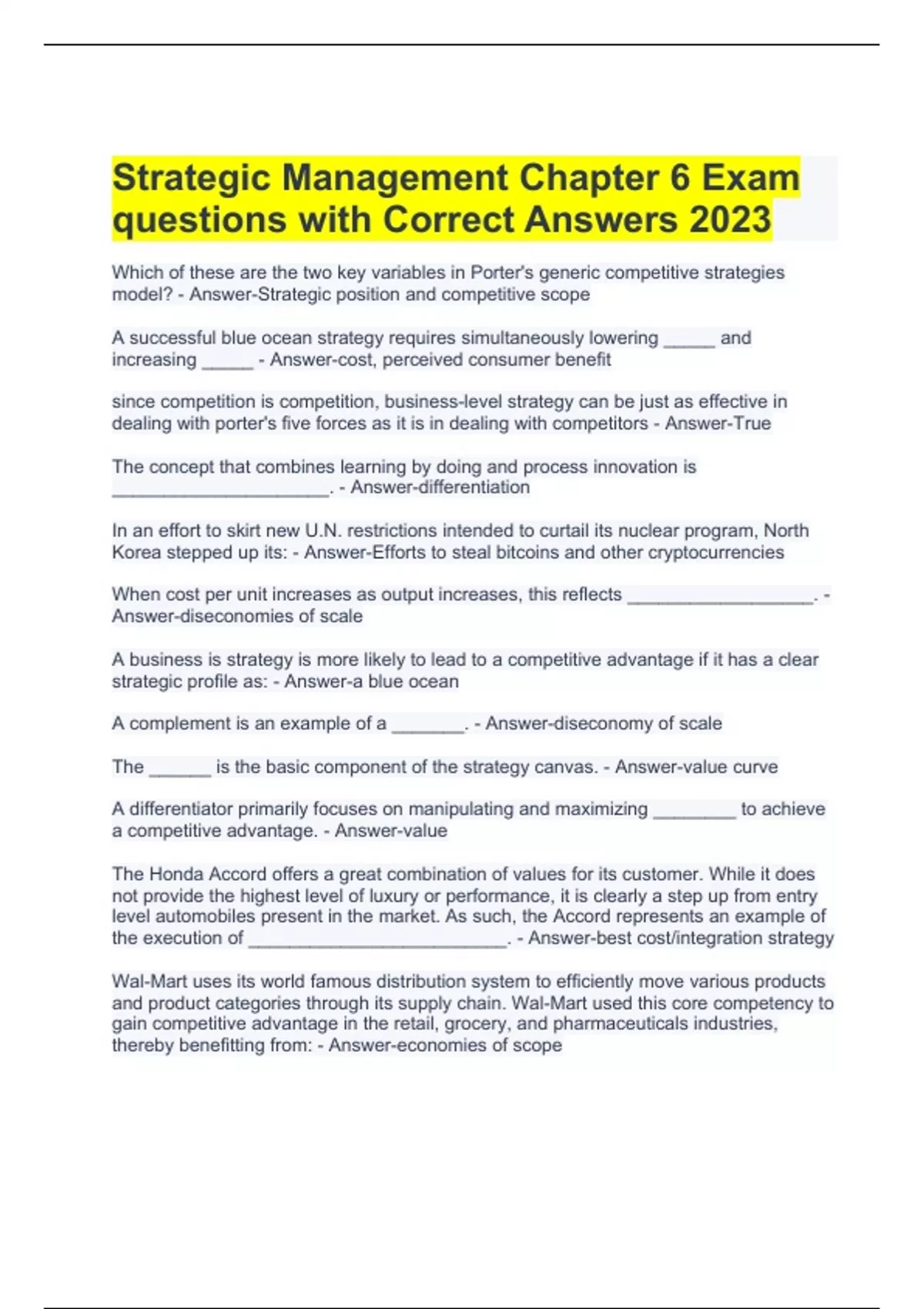 questions with Correct Answers 2023