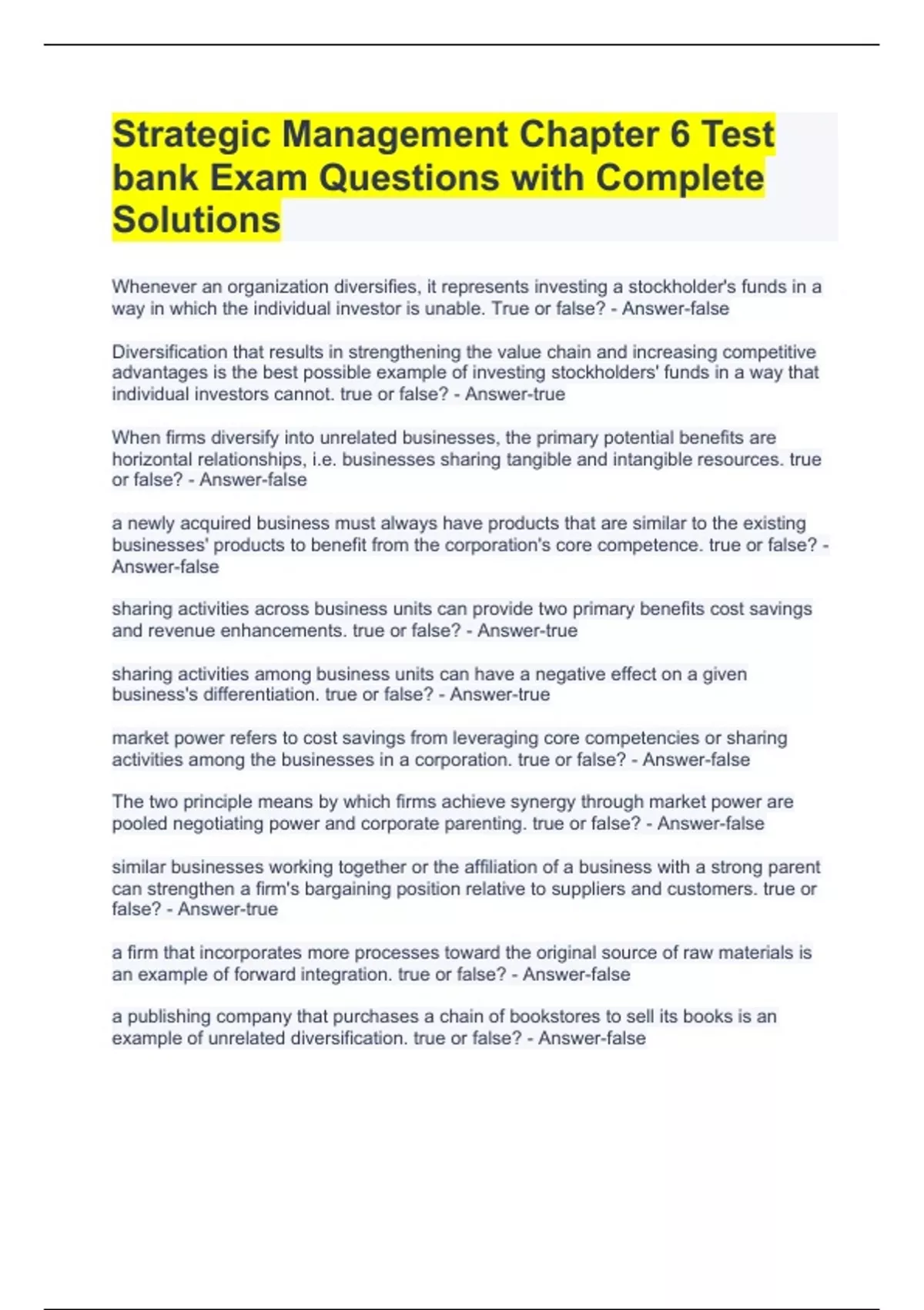 corporate level strategies. true or false? - Answer-false