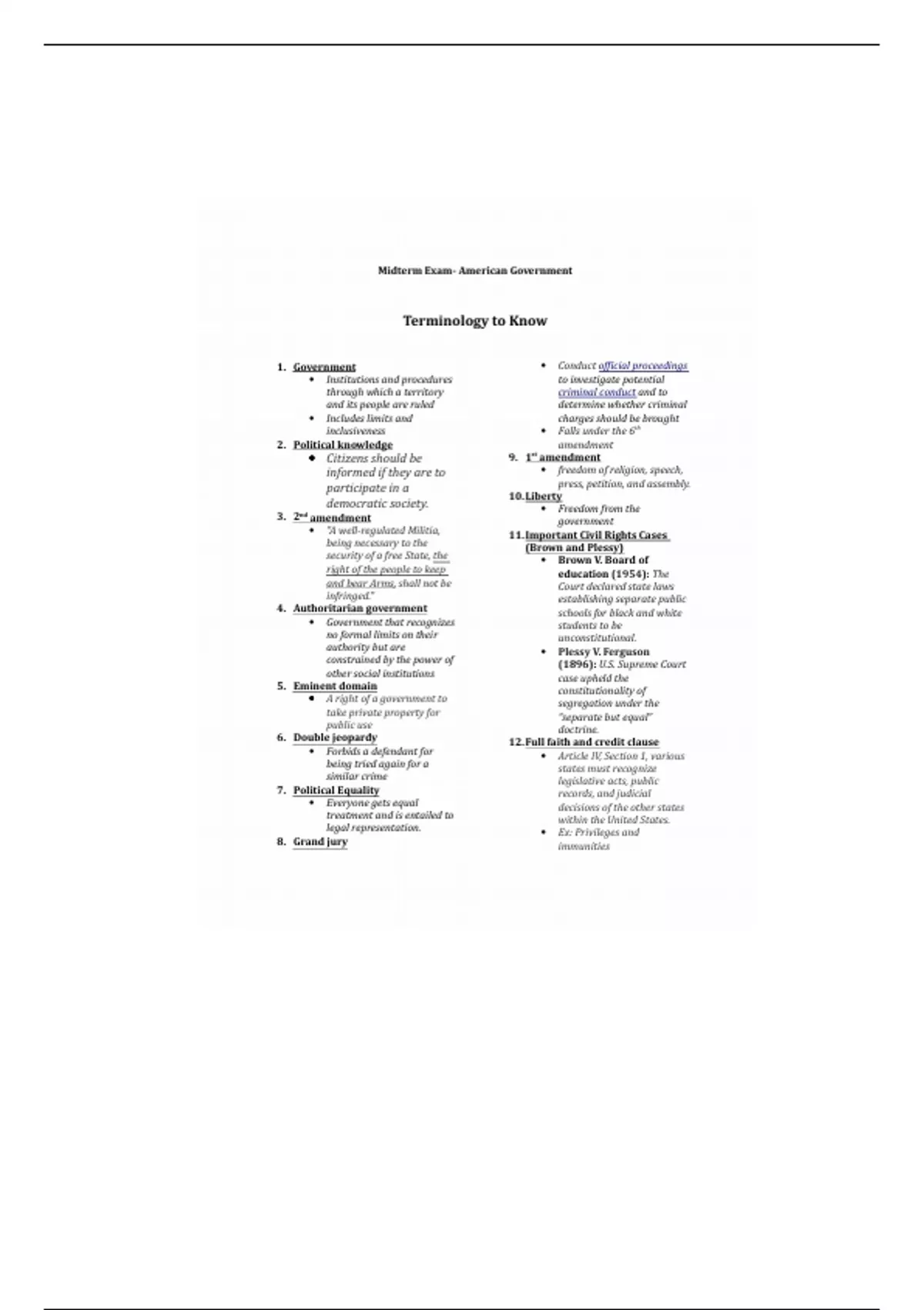 Political science test review notes * Comprehensive * Detailed * Legible * For students