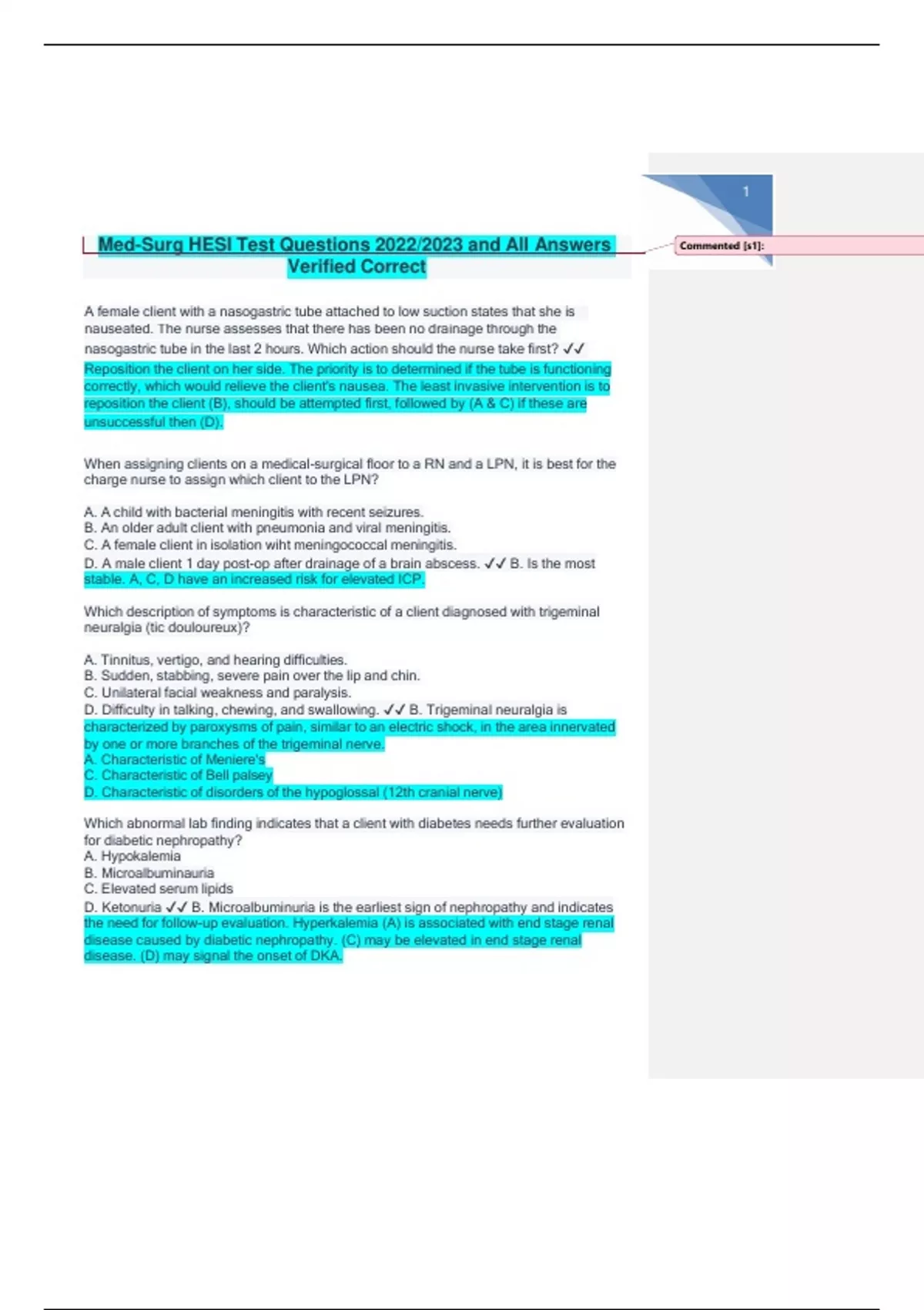 Med-Surg HESI Test Questions 2022/2023 and All Answers Verified Correct/Med-Surg HESI Test Questions 2022/2023 and All Answers Verified Correct/Med-Surg HESI Test Questions 2022/2023 and All Answers Verified Correct/Med-Surg HESI Test Questions 2022/2023 and All Answers Verified Correct/Med-Surg HESI Test Questions 2022/2023 and All Answers Verified Correct