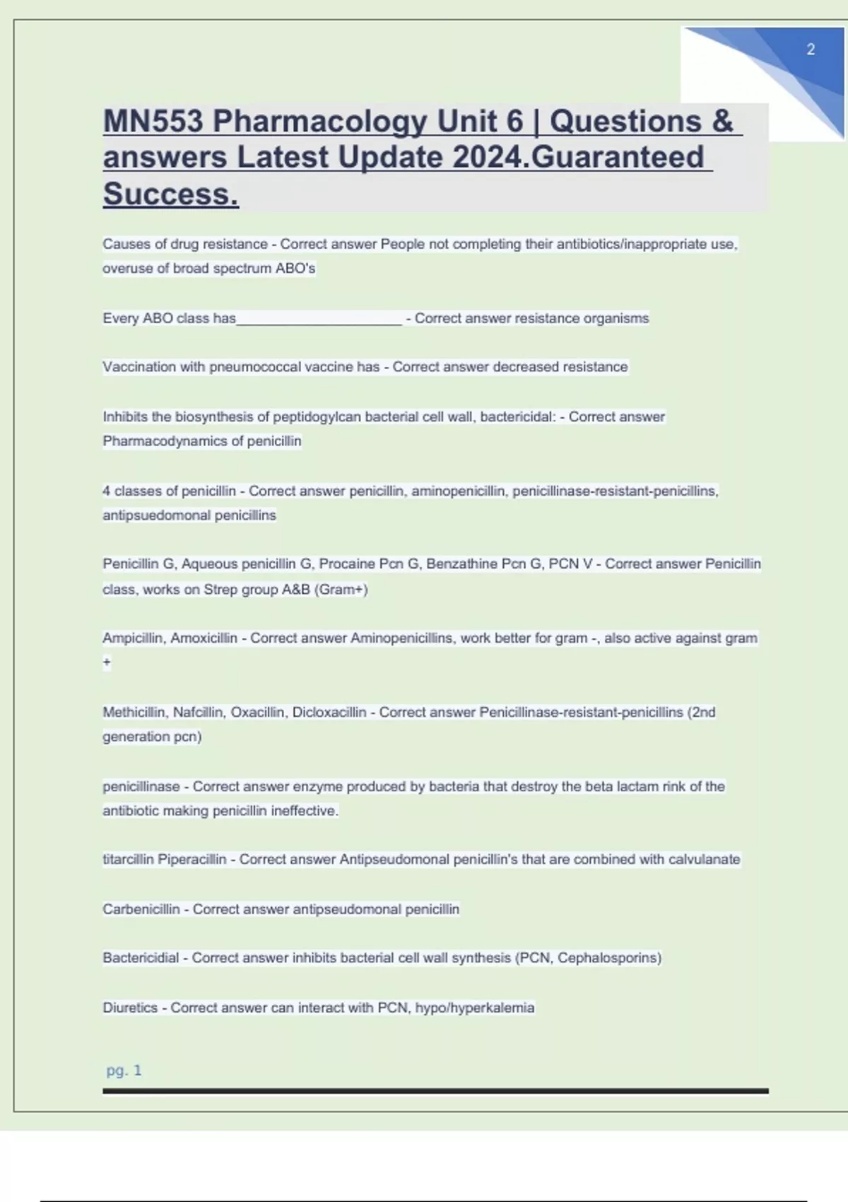 MN553 Pharmacology Unit 6 Questions & answers Latest Update 2024.Guaranteed Success..