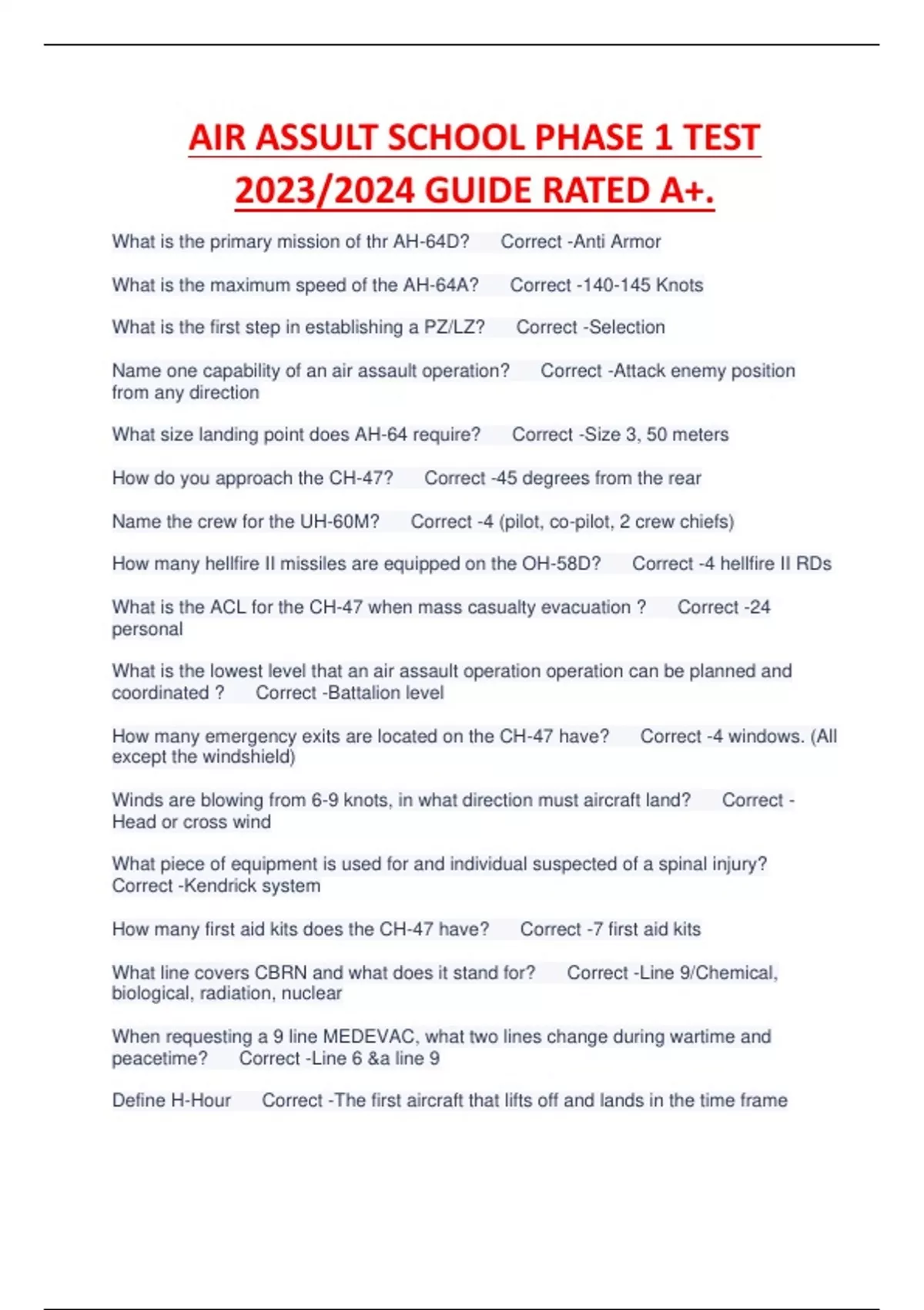 AIR ASSULT SCHOOL PHASE 1 TEST 2023/2024 GUIDE RATED A+.