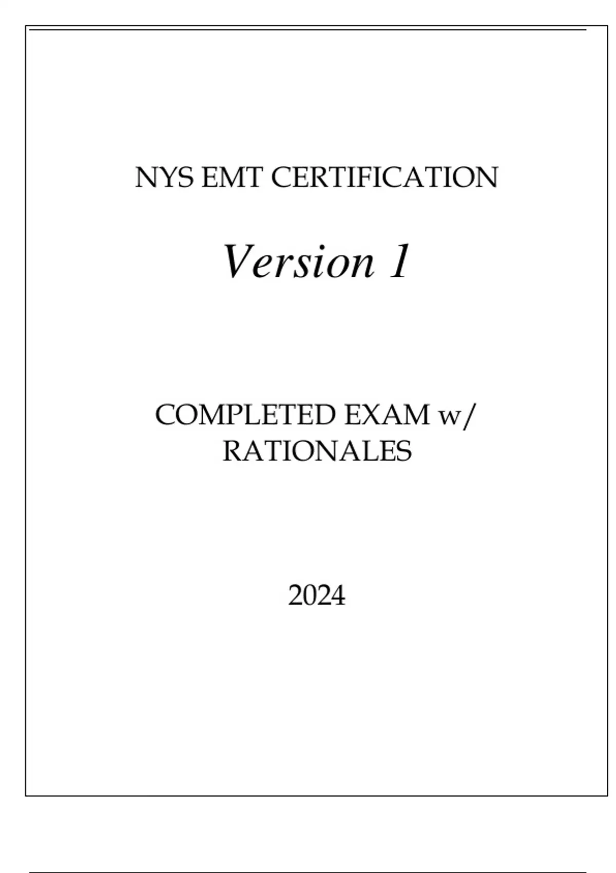 NYS EMT CERTIFICATION VERSION I COMPLETED EXAM WITH RATIONALES 2024