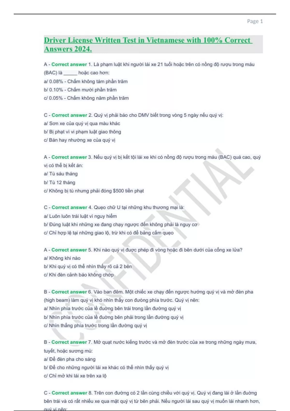 Driver License Written Test in Vietnamese with 100% Correct Answers 2024..