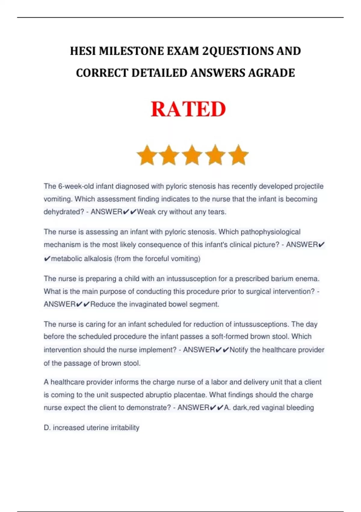 HESI MILESTONE EXAM 2QUESTIONS AND CORRECT DETAILED ANSWERS AGRADE.