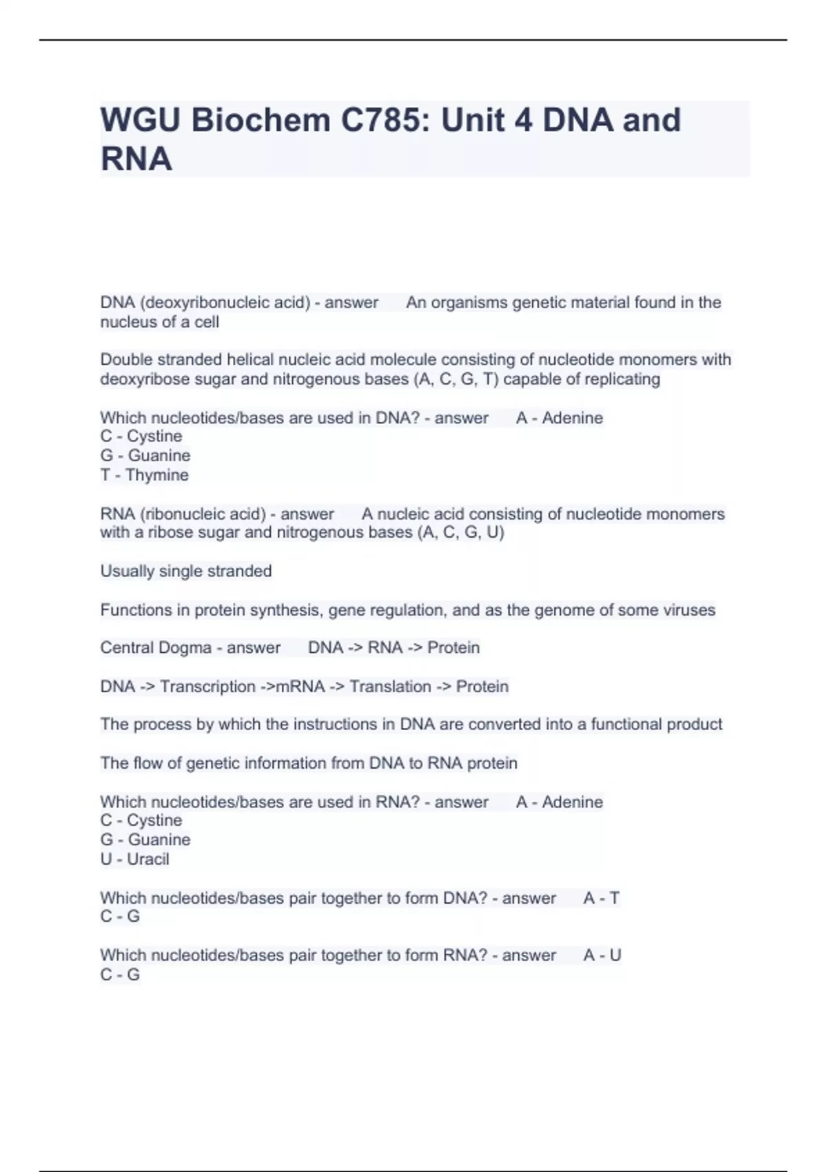 Exam of 9 pages for the course WGU C785 at WGU C785 (WGU Biochem C785)