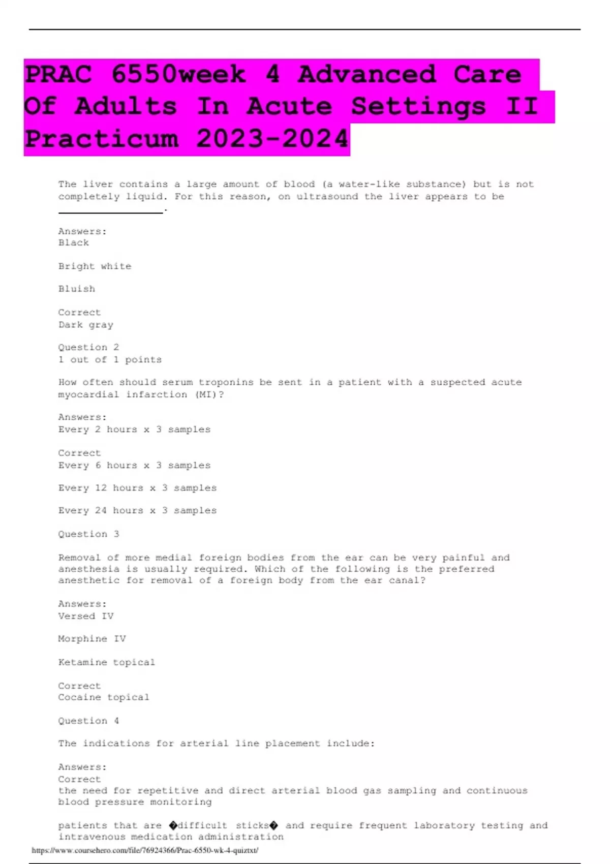 PRAC 6550week 4 Advanced Care Of Adults In Acute Settings II Practicum