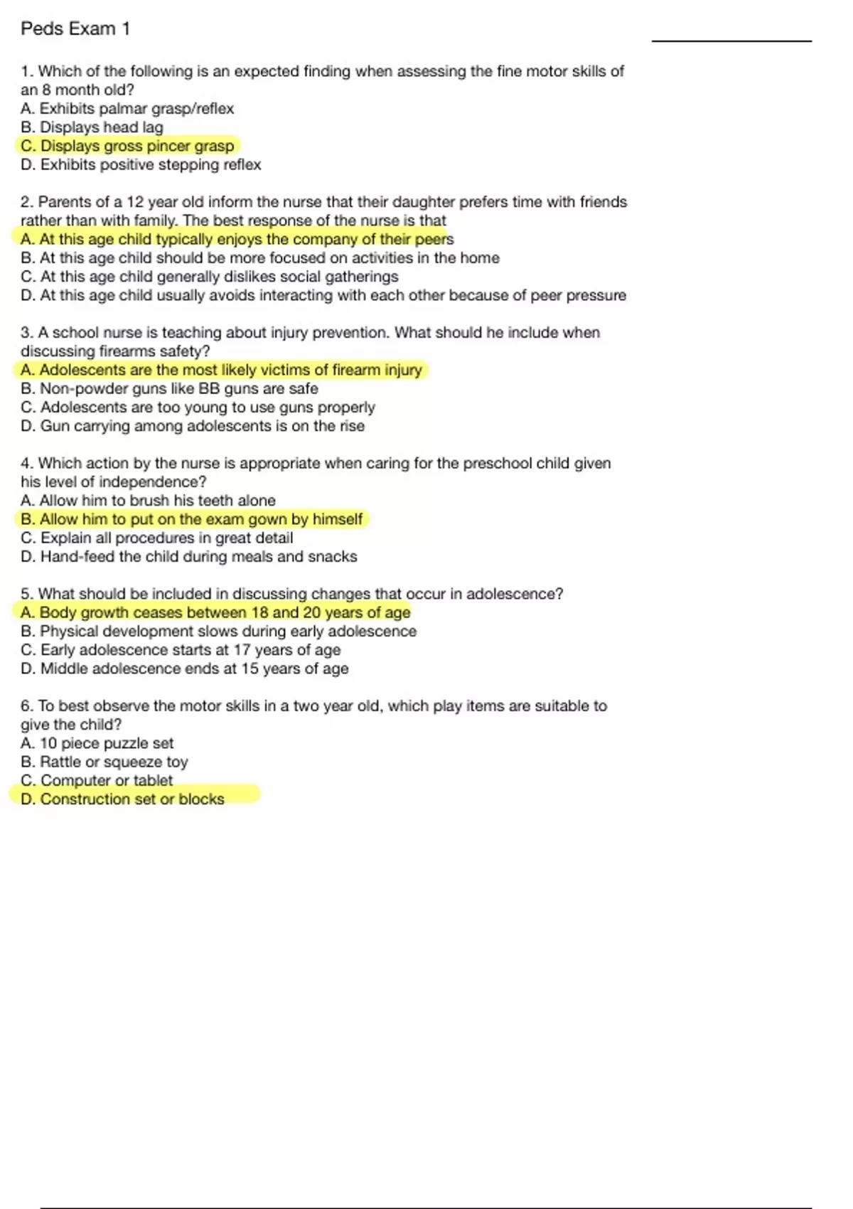 A+ in course Pediatric Nursing, Trocaire College Exam 1 Study Questions