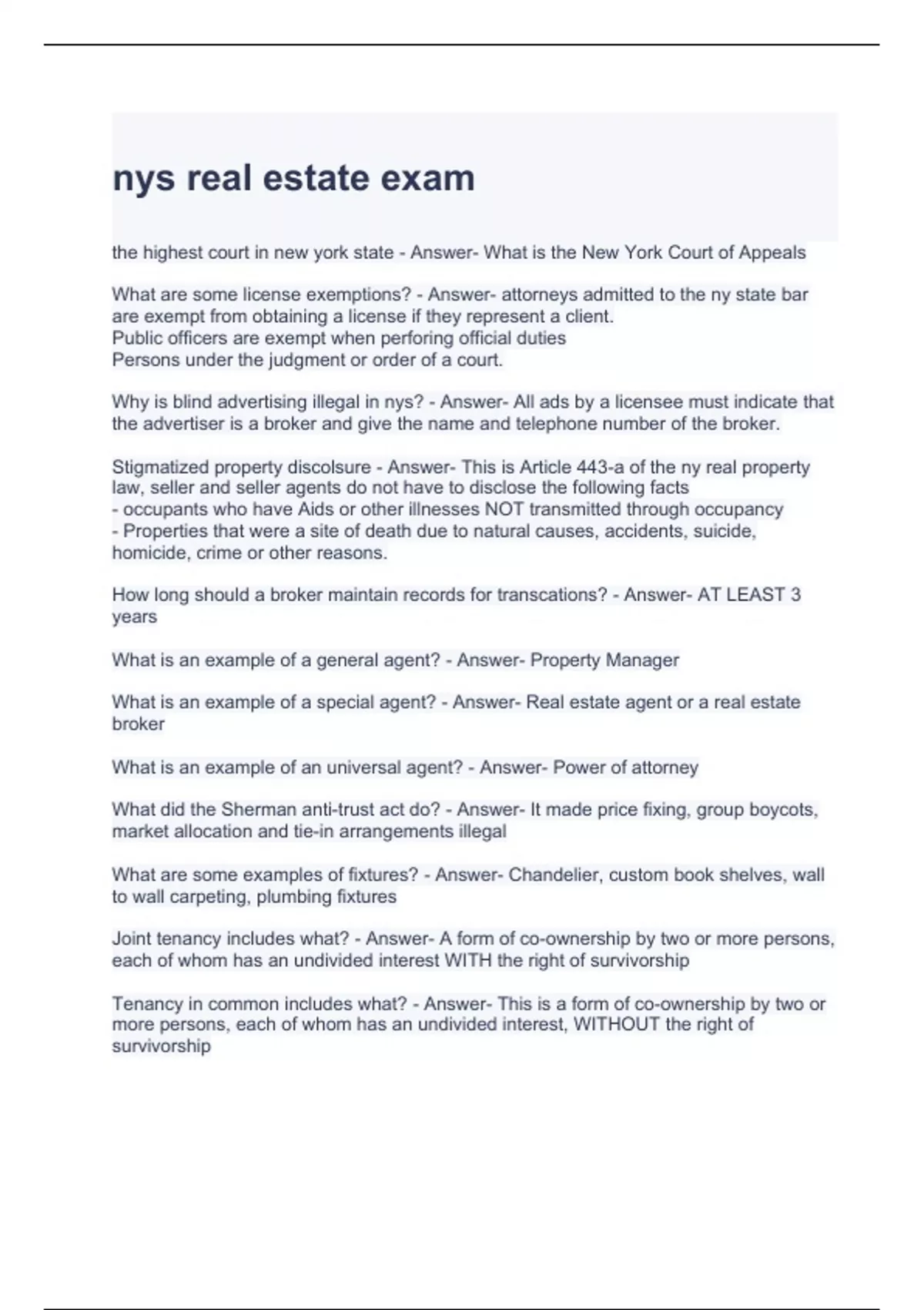 nys real estate exam questions with correct answers
