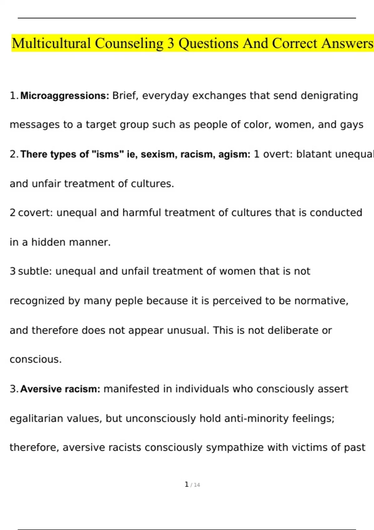 Multicultural Counseling 3 correct answers