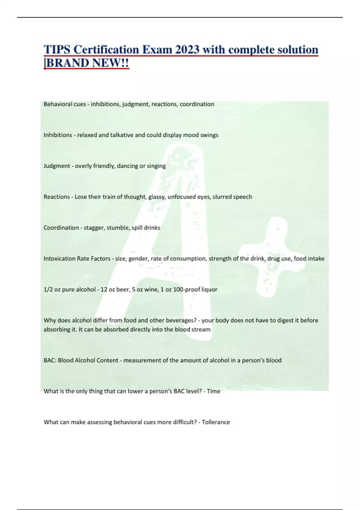 TIPS Certification Exam 2023 with complete solution |BRAND NEW!!
