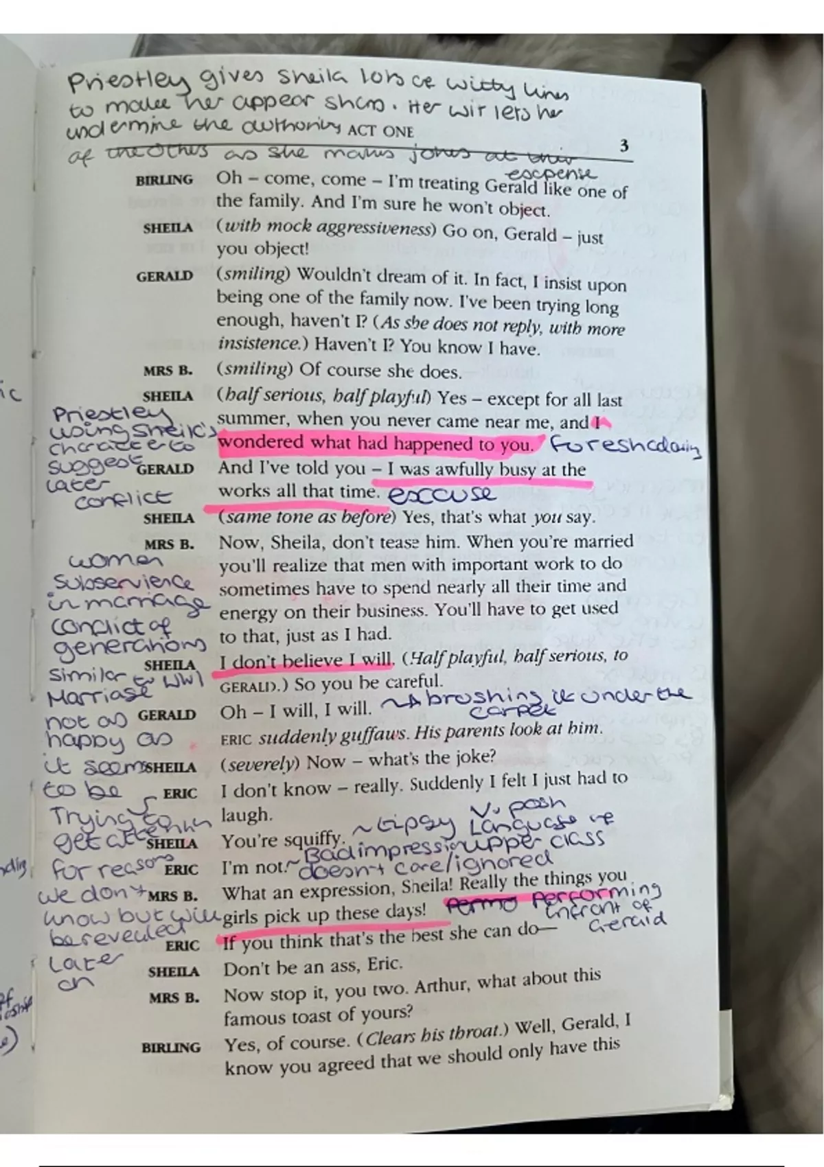 Enhance your grasp of "An Inspector Calls" Act One with our detailed annotations designed for AQA GCSE English Literature. Our annotations break down the key elements of the play, helping you navigate themes, characters, and literary techniques seamlessly. Ideal for students seeking clarity or teachers in need of a practical teaching aid, our annotations provide a straightforward approach to understanding Act One. Improve your analysis and exam performance without unnecessary hype. Simplify your study routine and order our annotations today for a more straightforward and effective learning experience.