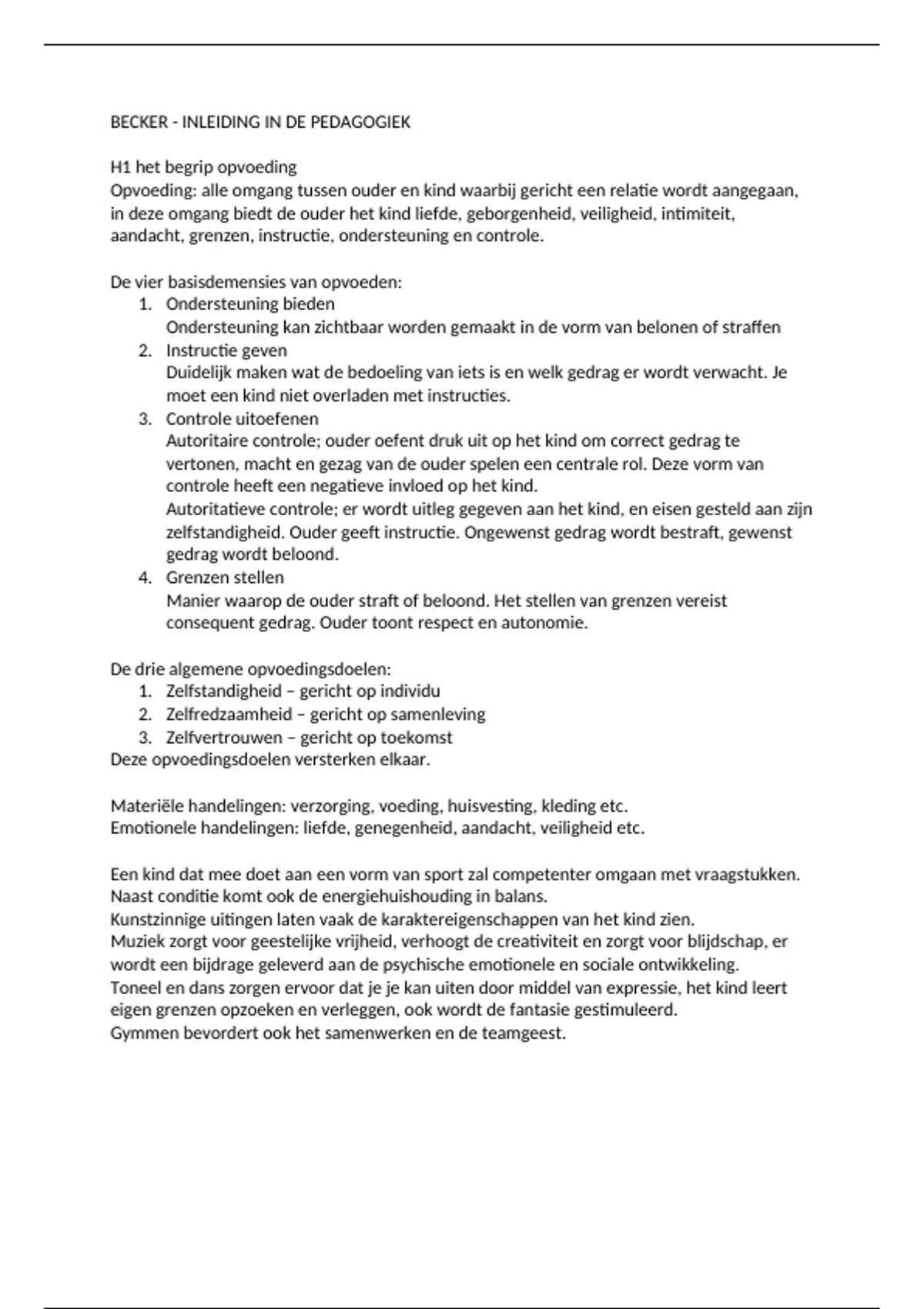 Samenvatting inleiding in de pedagogiek H1t/m4 +6