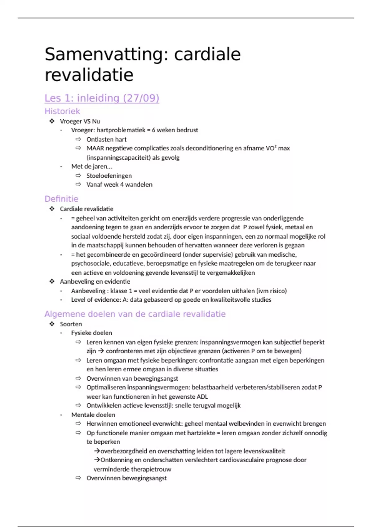Samenvatting Theorie cardiovasculaire ziekteleer