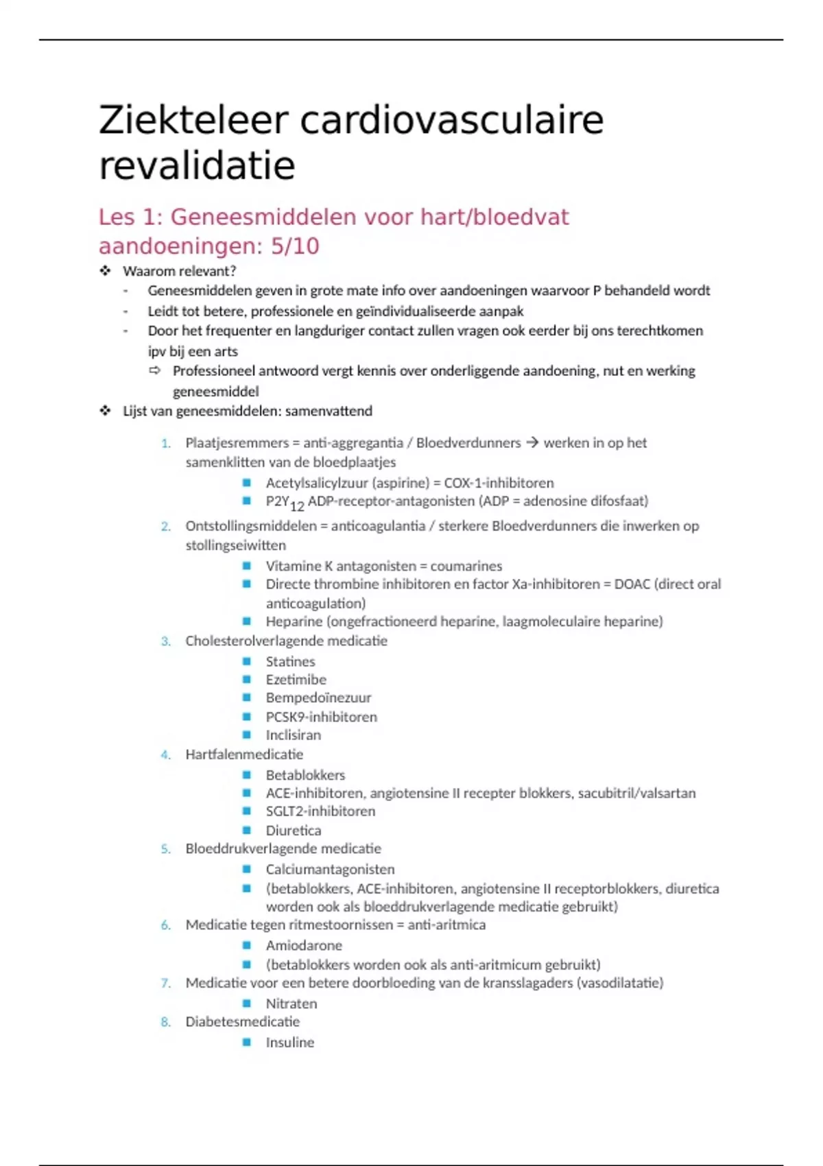Les 1: Geneesmiddelen voor hart/bloedvat